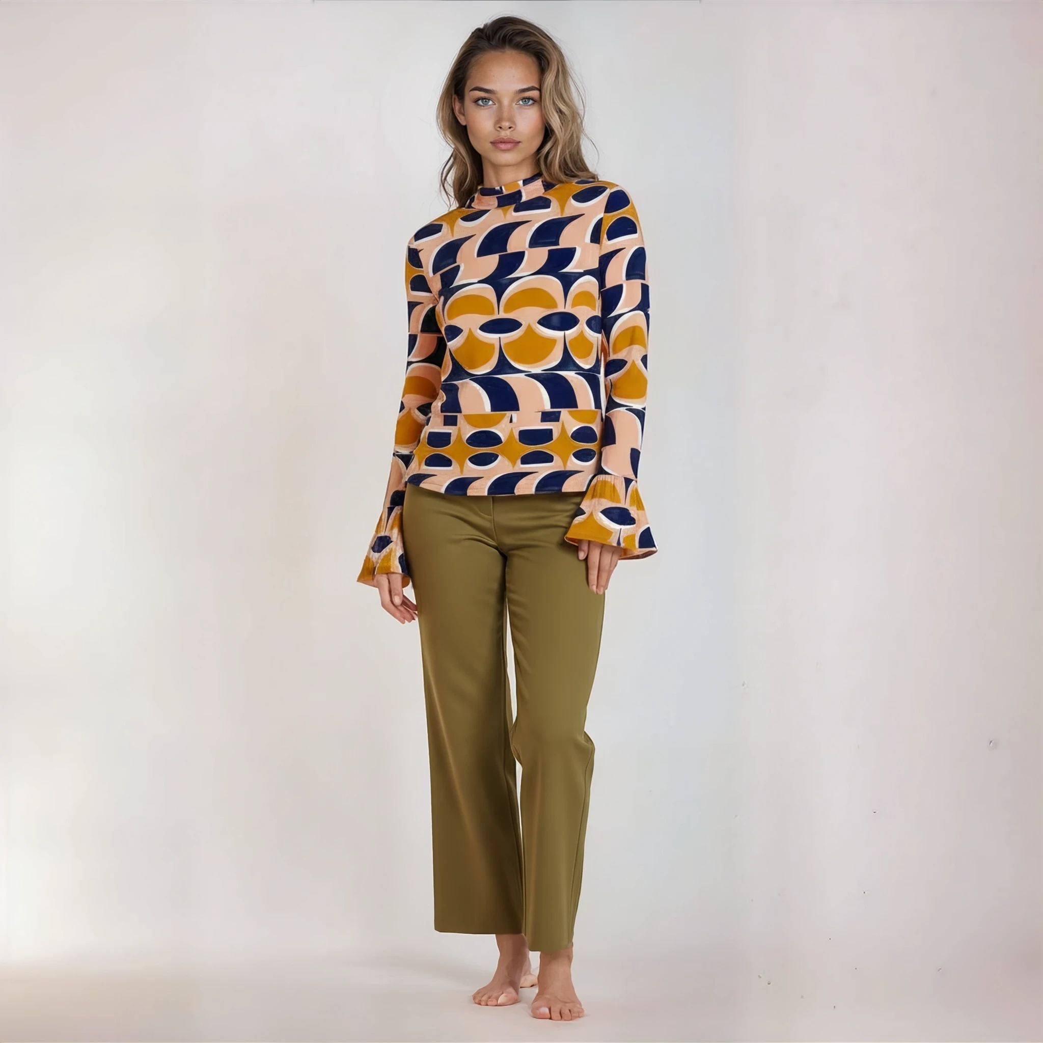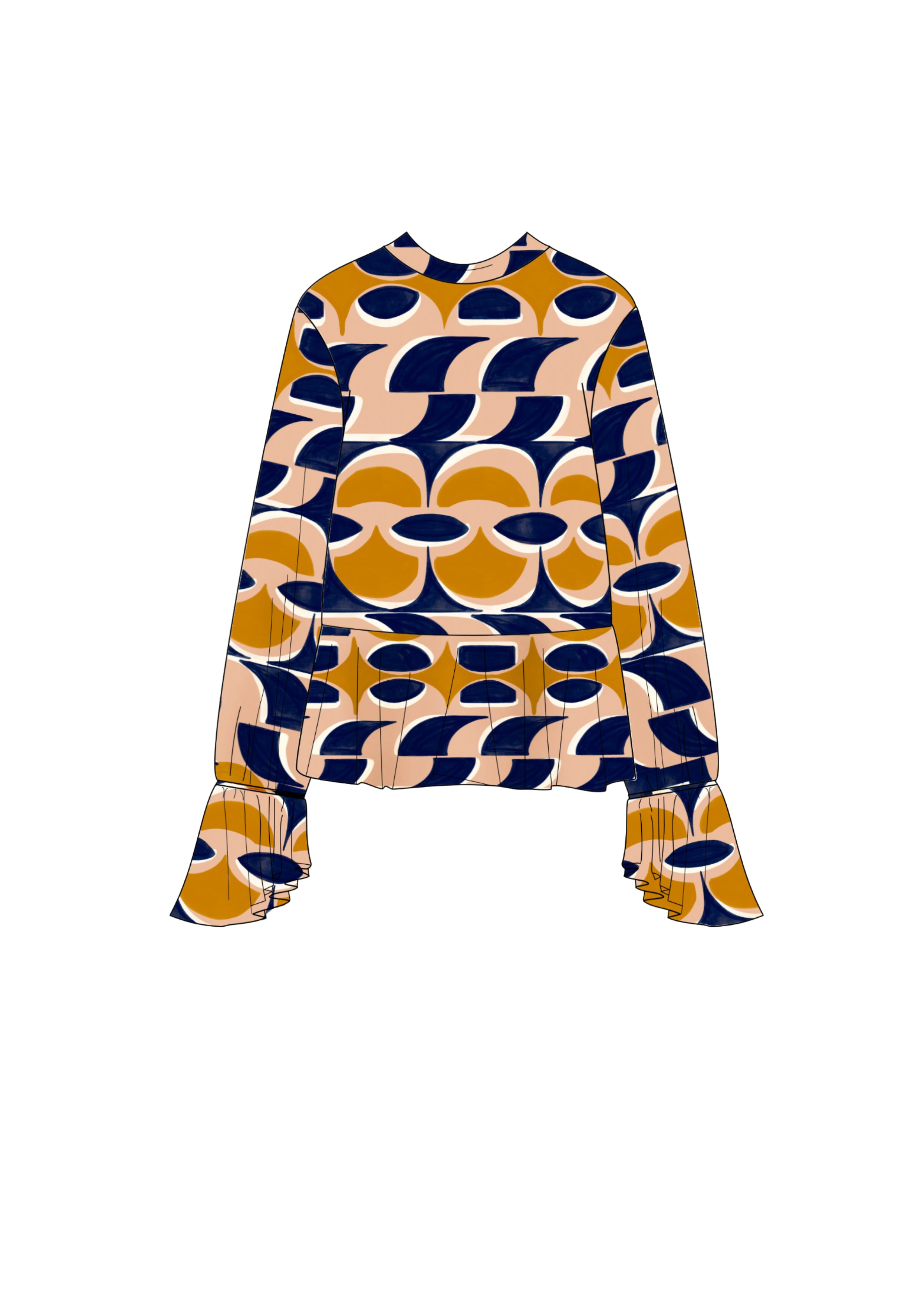 The Peplum Top steps into the spotlight with a crisp round neck, soft back-tie detailing and a full-circle frill that sits beautifully flat along the waist. Extra-long sleeves steal the scene with elasticated cuffs and an asymmetric frill at the wrist. A little swish, a little flourish, all GOOD charm.