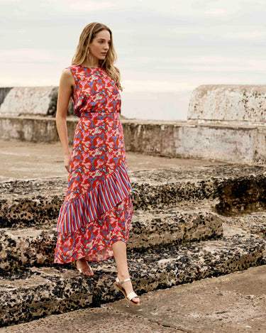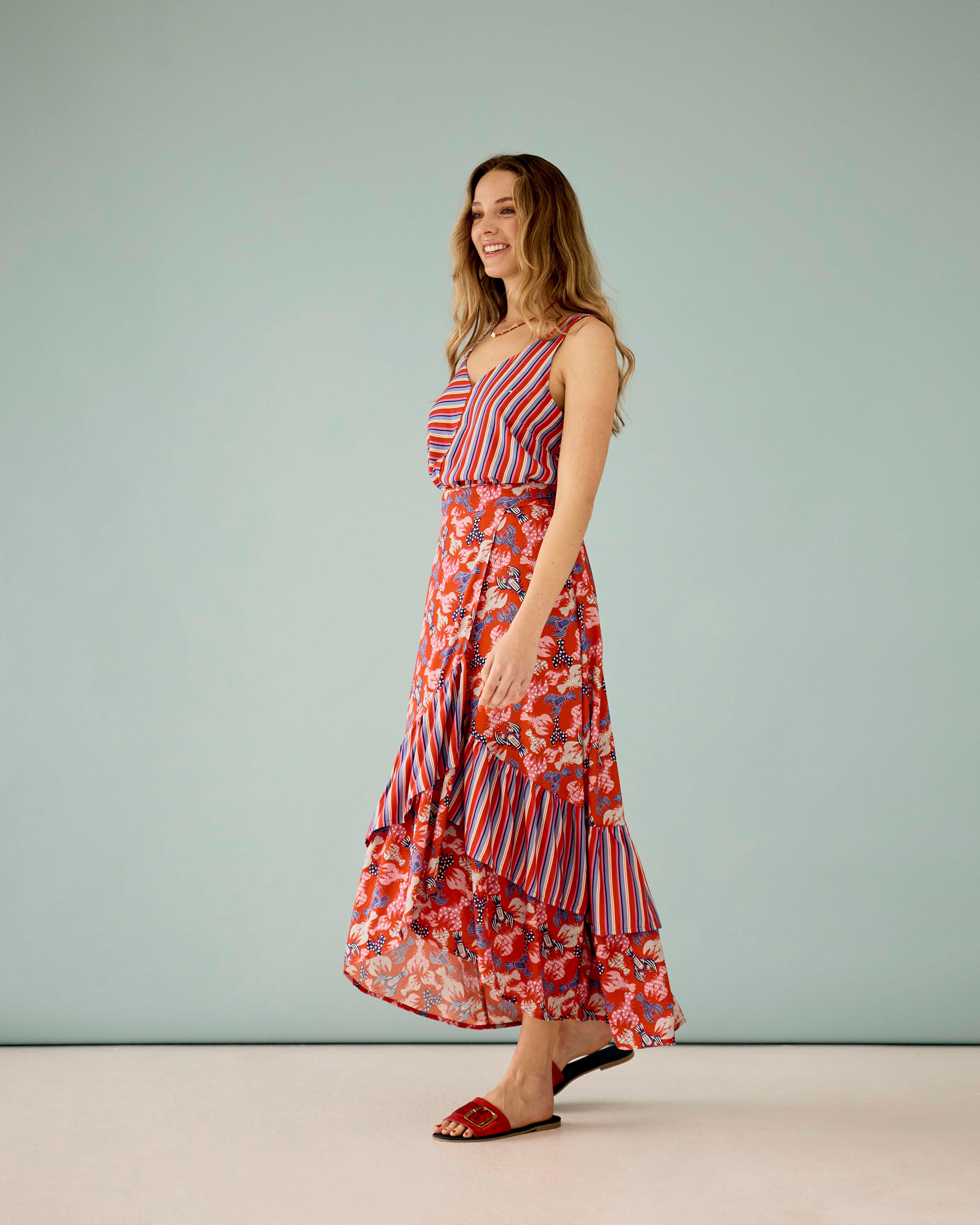 Kick off summer right with our jungle fever Wrap Skirt! This versatile garment features a double frill in a contrast print for added fiesta and can be easily dressed up or down. Its adjustable fit, thanks to the self-tie, makes it perfect for any body type.