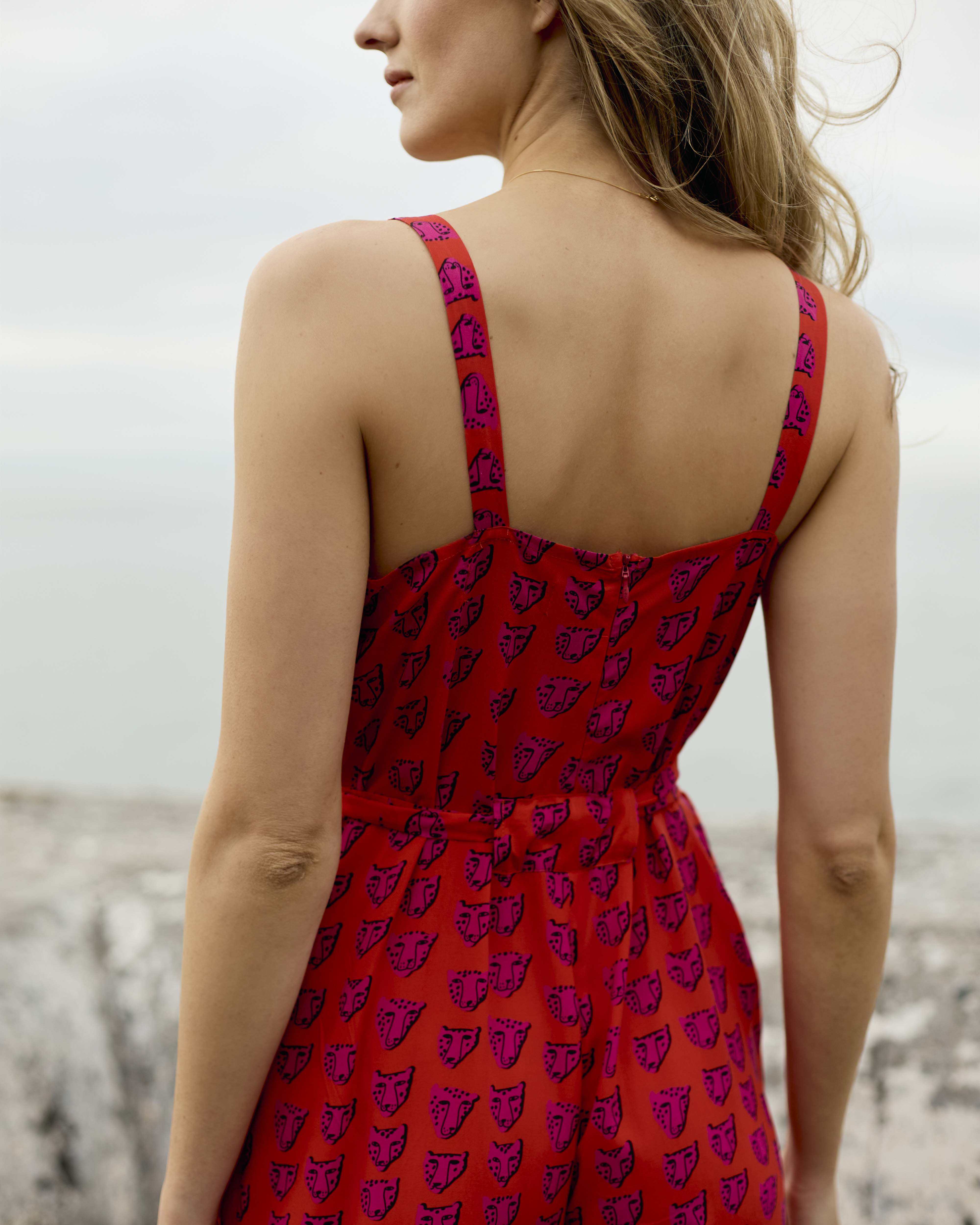 Handmade in Cape Town. Natural fibres should preferably be treated as delicates. Dry clean or hand wash in cold water with minimal detergent. Do not twist/wring. Do not tumble dry. Do not dry in the sun. A hot iron on the reverse side of your prints is the answer to restoring your Rayon/natural fibre to its former shape and silkiness.