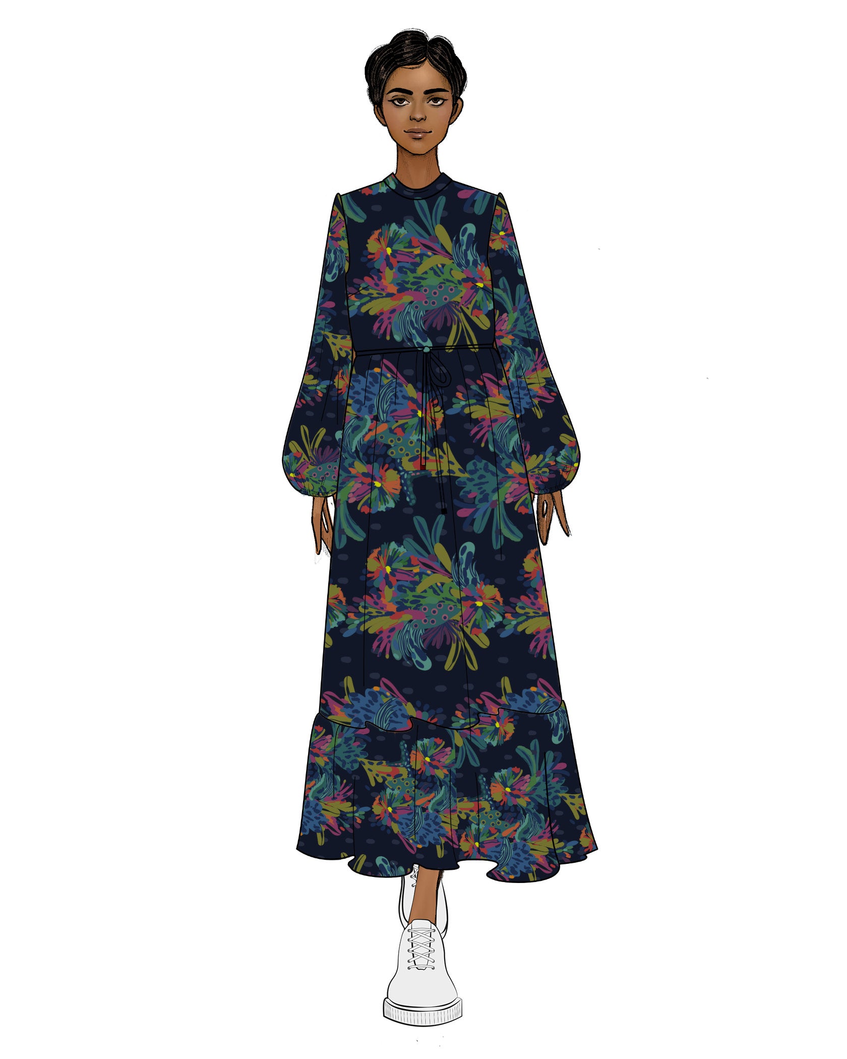 Handmade in Cape Town. Natural fibres should preferably be treated as delicates. Dry clean or hand wash in cold water with minimal detergent. Do not twist/wring. Do not tumble dry. Do not dry in the sun. A hot iron on the reverse side of your prints is the answer to restoring your Rayon/natural fibre to its former shape and silkiness.