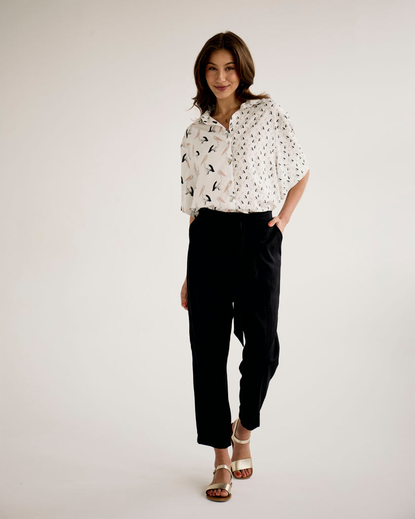 Handmade in Cape Town. Natural fibres should preferably be treated as delicates. Dry clean or handwash in cold water with minimal detergent. Do not twist/wring. Do not tumble dry. Do not dry in the sun. A hot iron on the reverse side of your prints is the answer to restoring your Rayon/natural fibre to its former shape and silkiness.