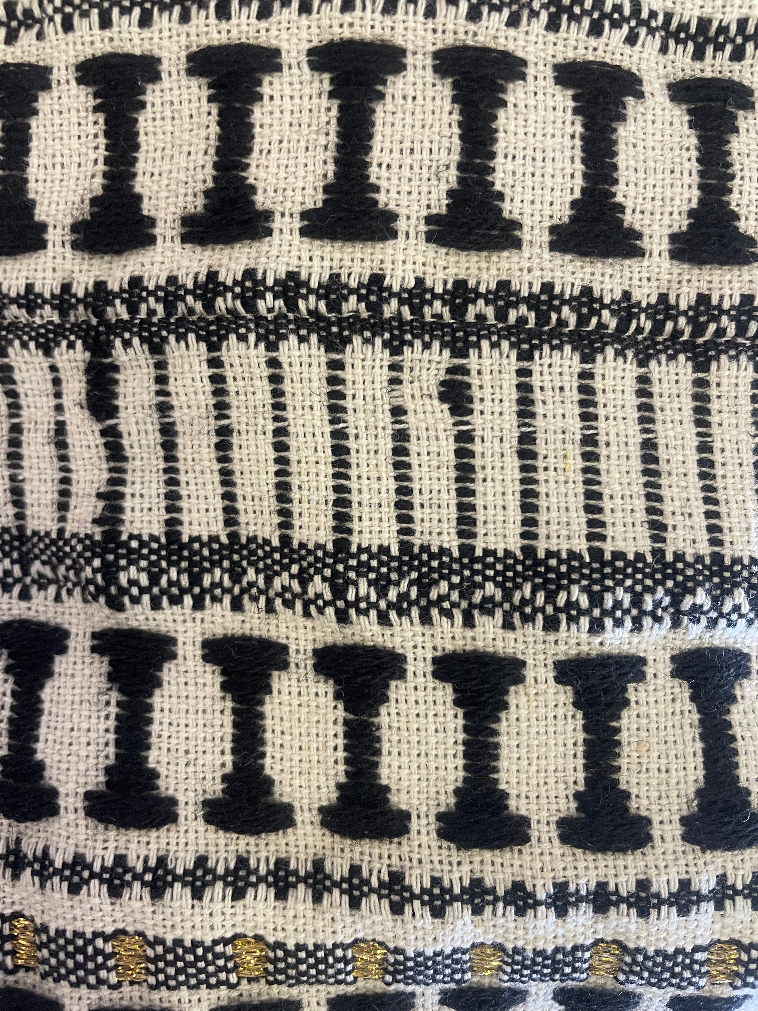 Made from a 100% Cotton, the cream and black jacquard weave is exquisitely detailed and the flecks of gold woven into the fabric adds a subtle shimmer here and there.