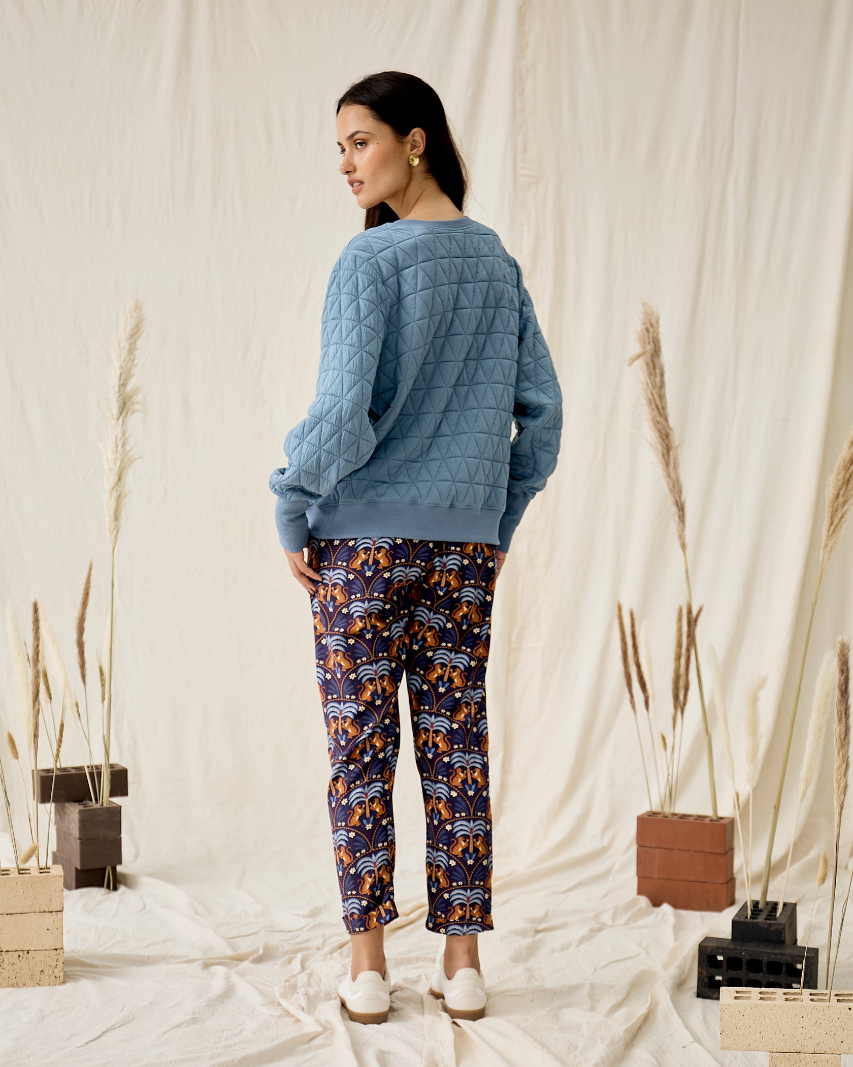 Handmade in Cape Town. Natural fibres should preferably be treated as delicates. Dry clean or hand wash in cold water with minimal detergent. Do not twist/wring. Do not tumble dry. Do not dry in the sun. A hot iron on the reverse side of your prints is the answer to restoring your Rayon/natural fibre to its former shape and silkiness.