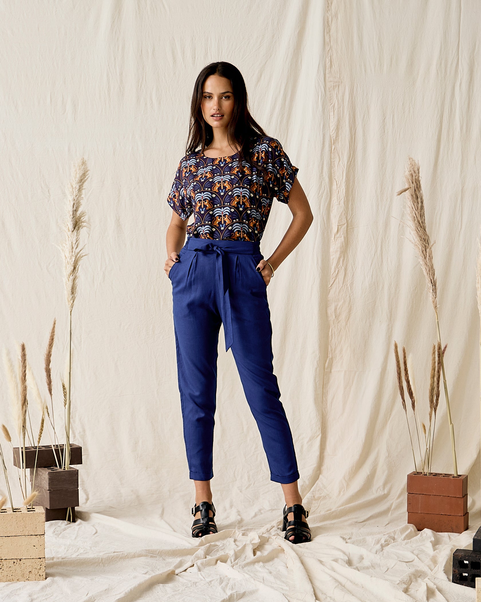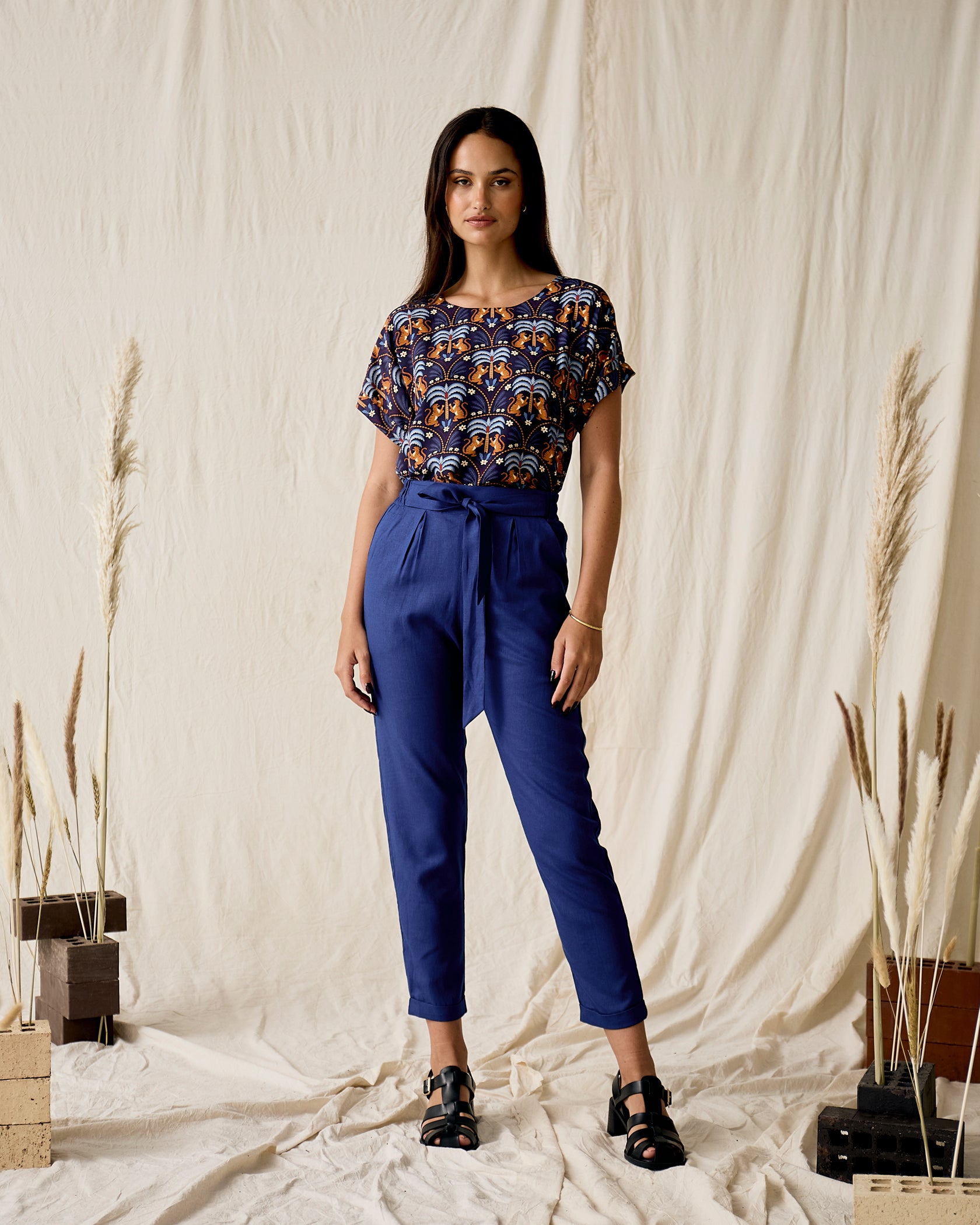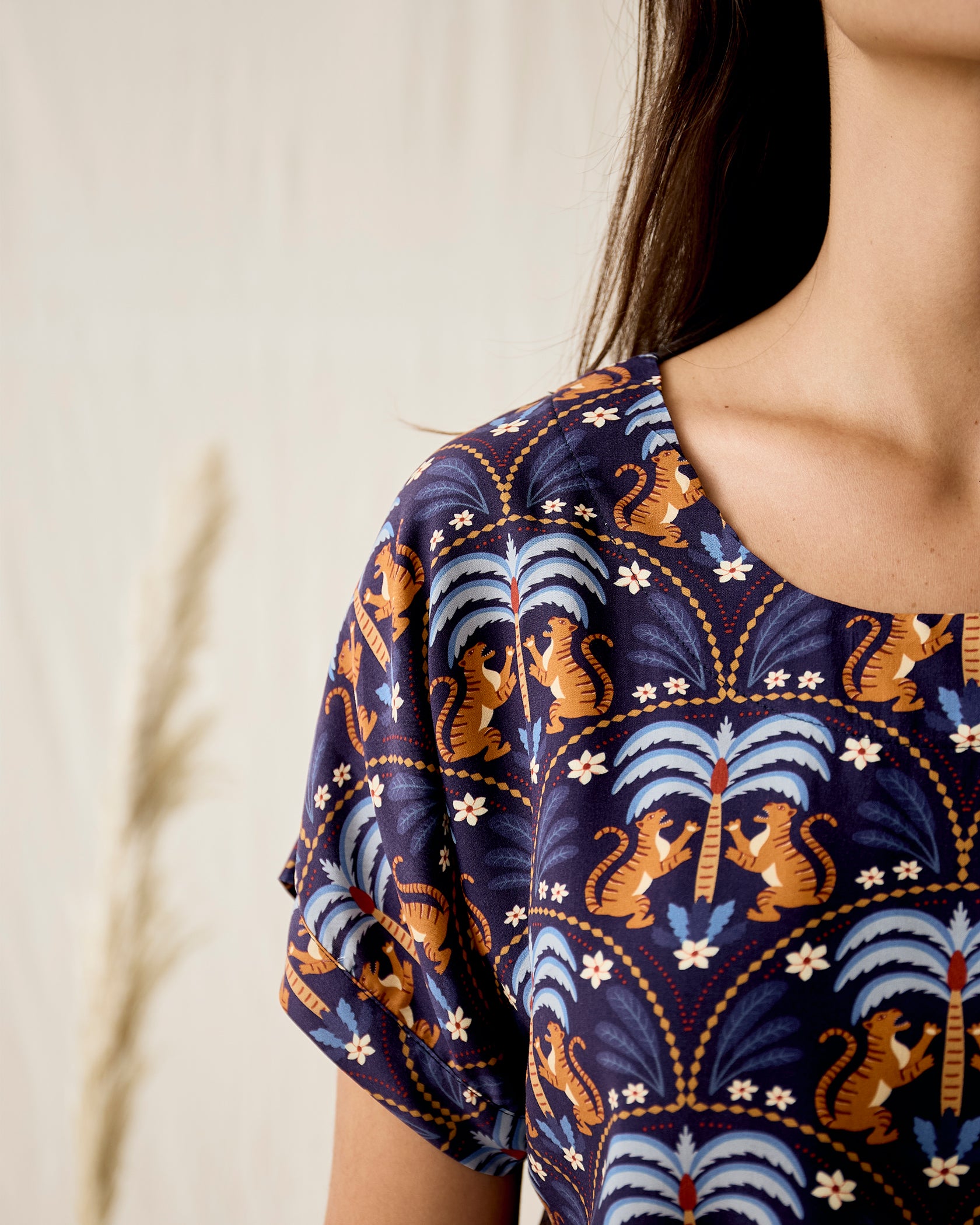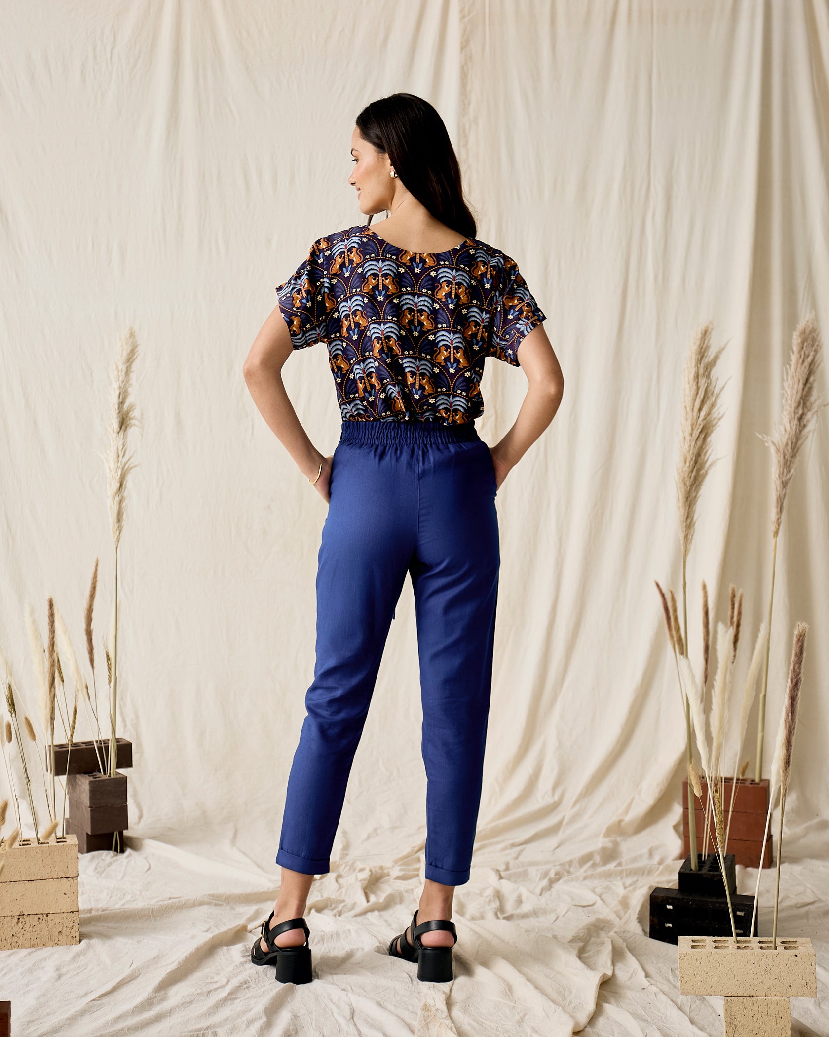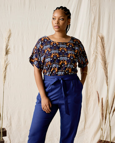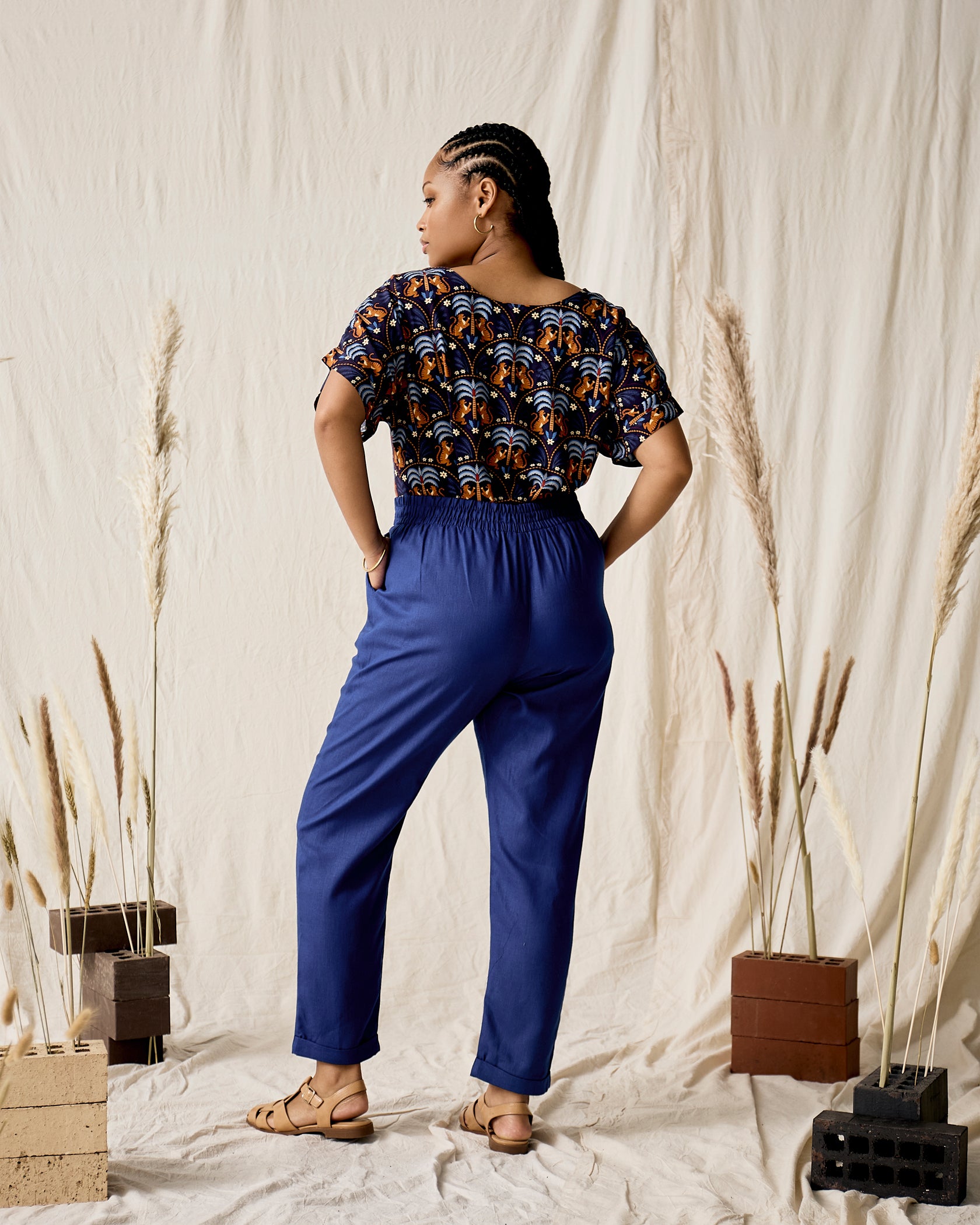 Handmade in Cape Town. Natural fibres should preferably be treated as delicates. Dry clean or hand wash in cold water with minimal detergent. Do not twist/wring. Do not tumble dry. Do not dry in the sun. A hot iron on the reverse side of your prints is the answer to restoring your Rayon/natural fibre to its former shape and silkiness.