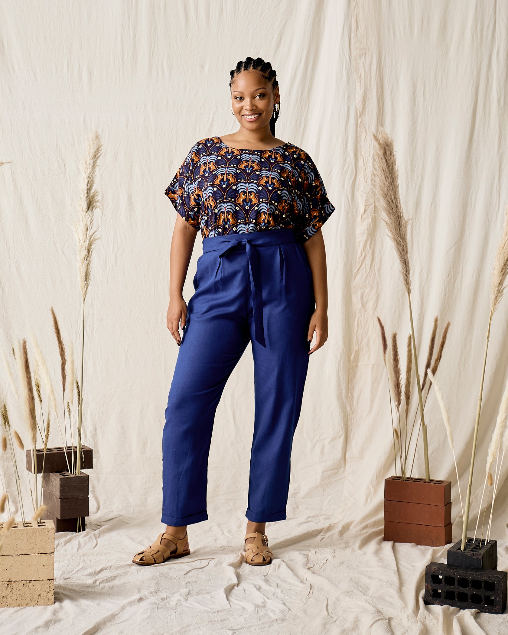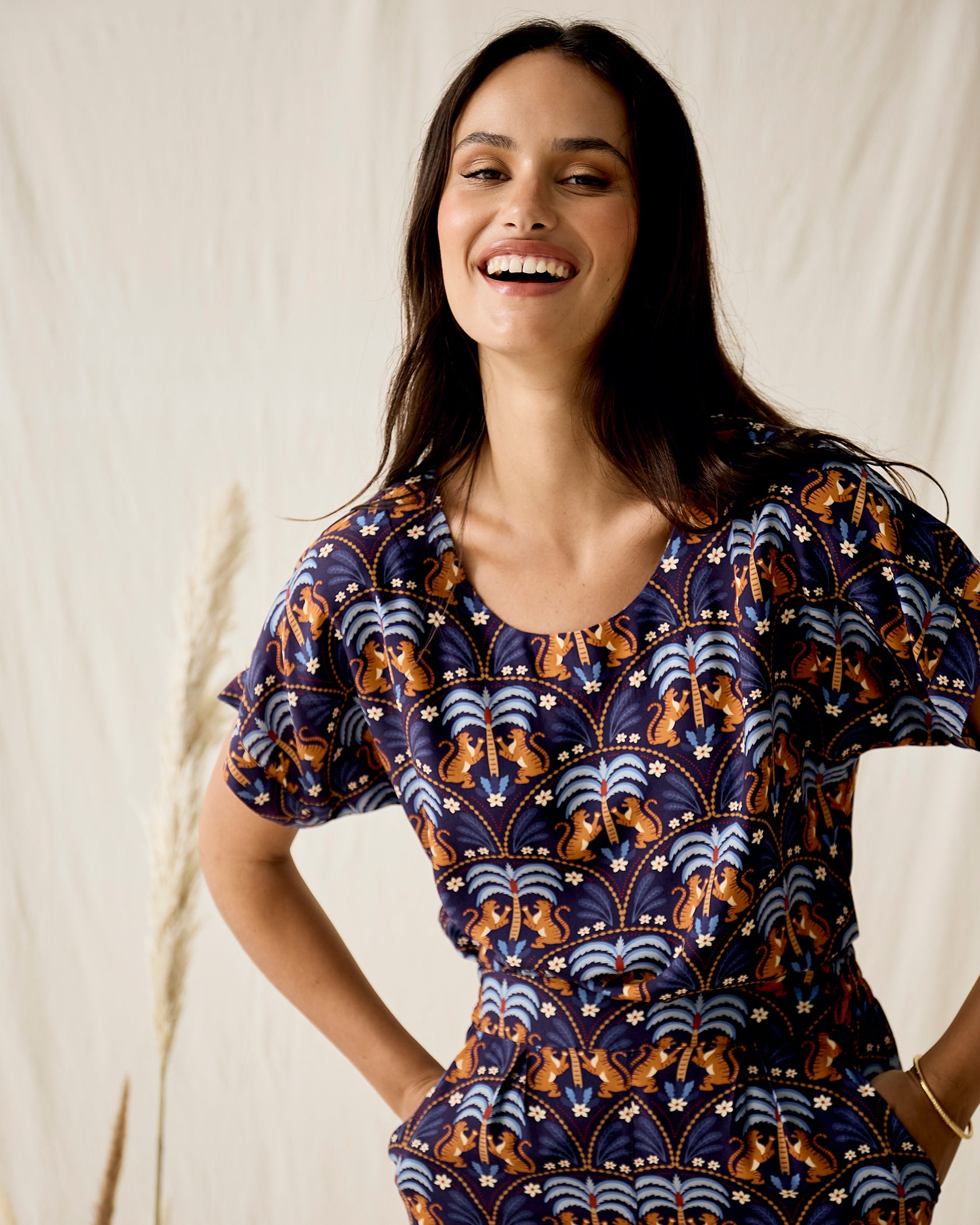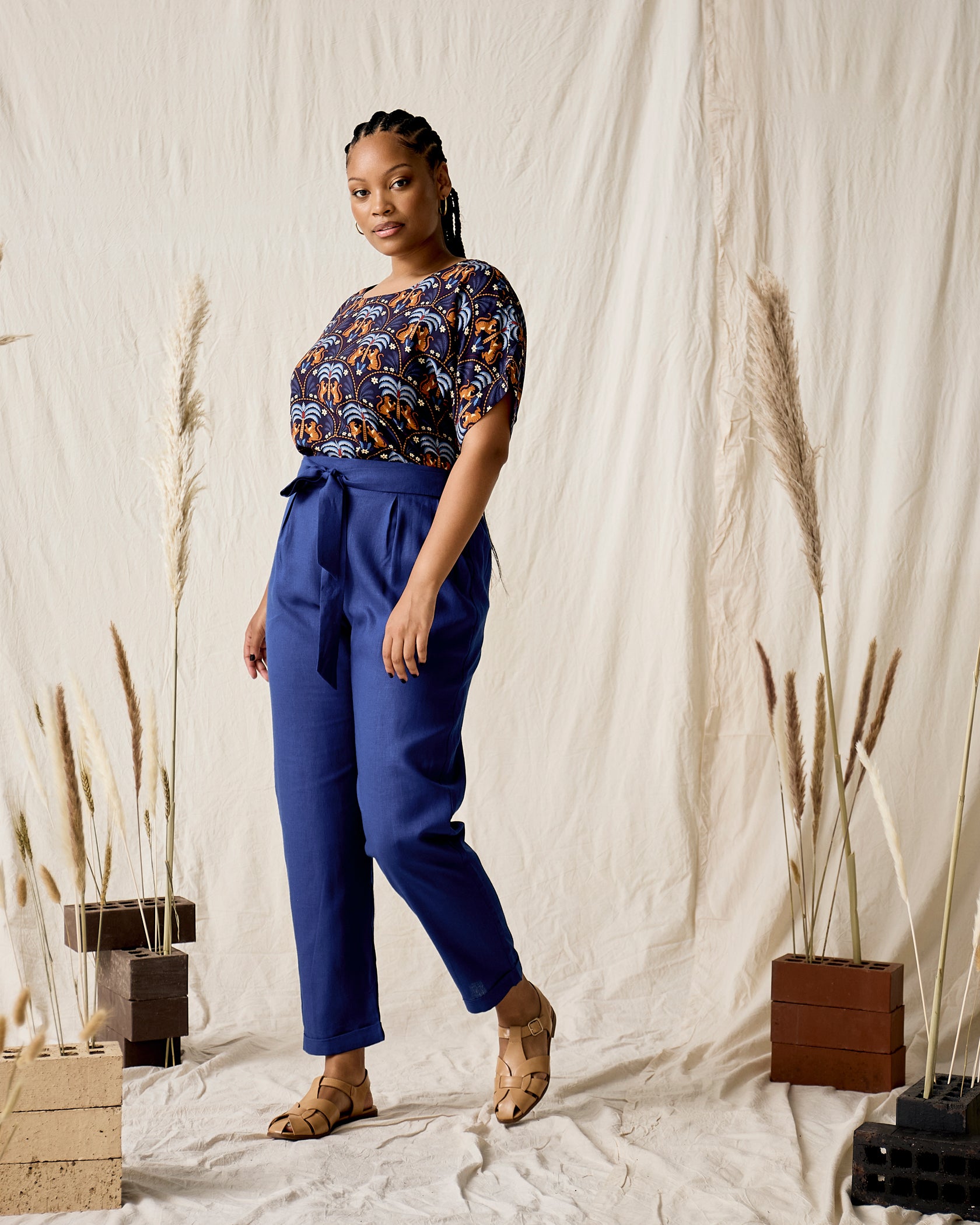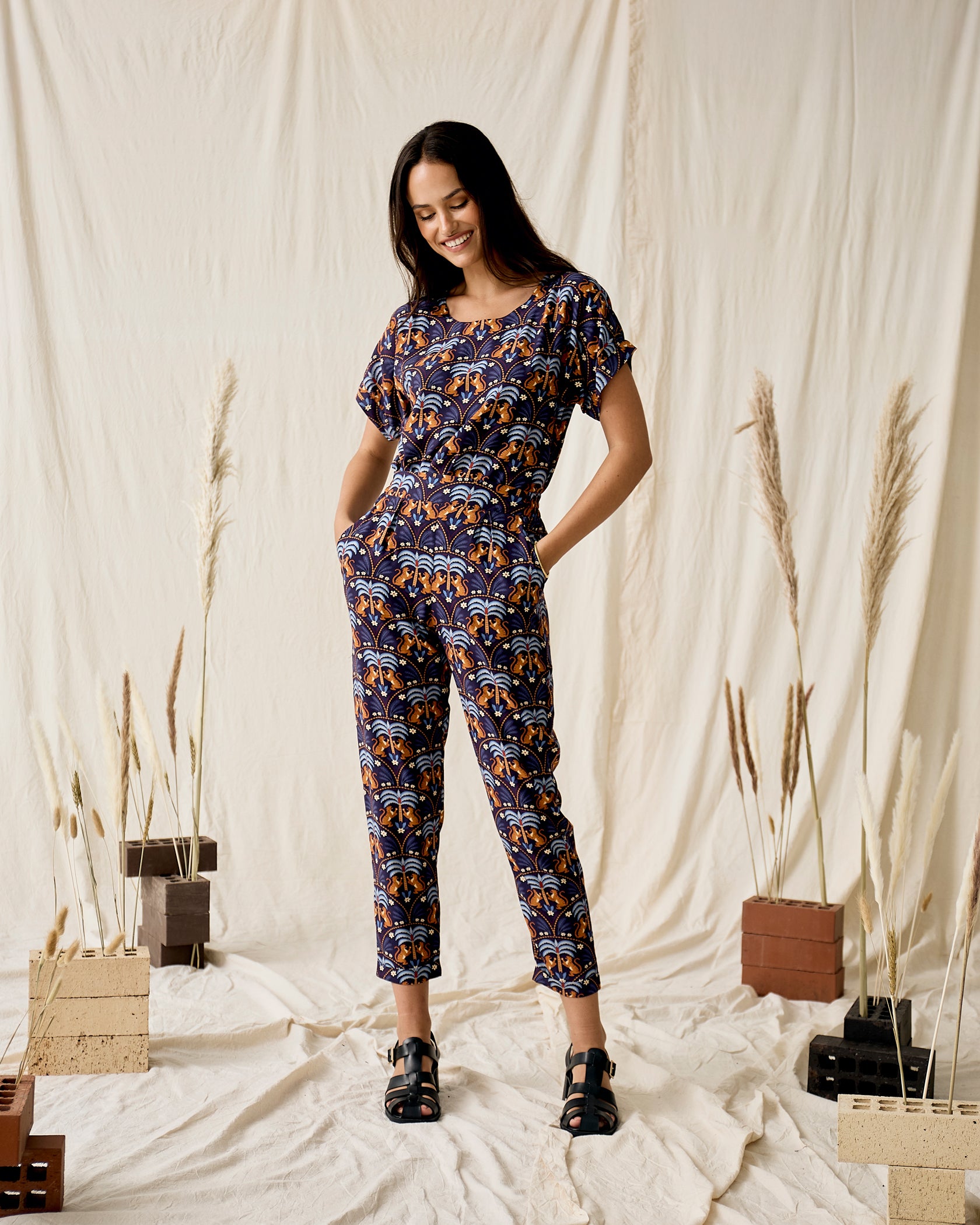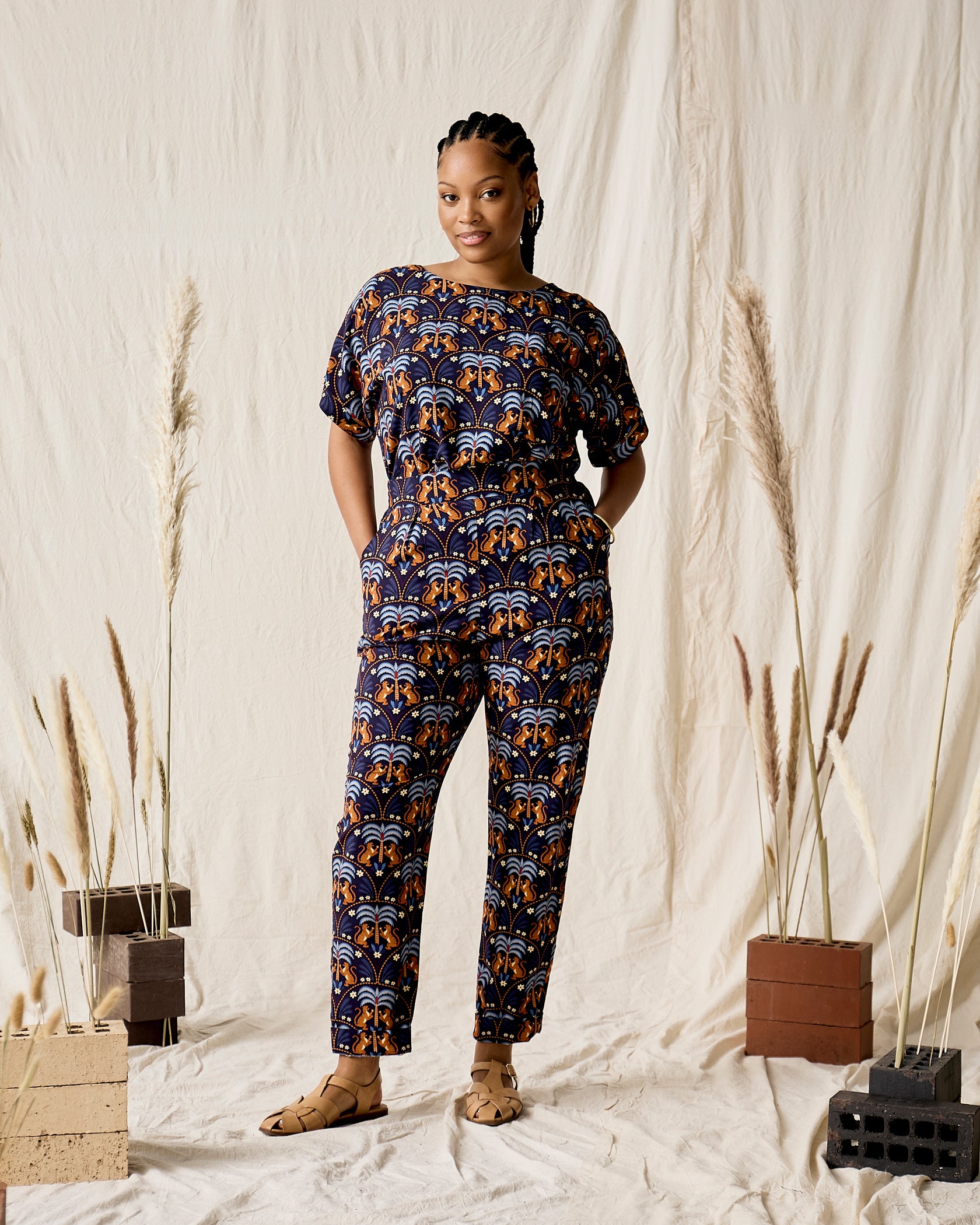 Handmade in Cape Town. Natural fibres should preferably be treated as delicates. Dry clean or hand wash in cold water with minimal detergent. Do not twist/wring. Do not tumble dry. Do not dry in the sun. A hot iron on the reverse side of your prints is the answer to restoring your Rayon/natural fibre to its former shape and silkiness.