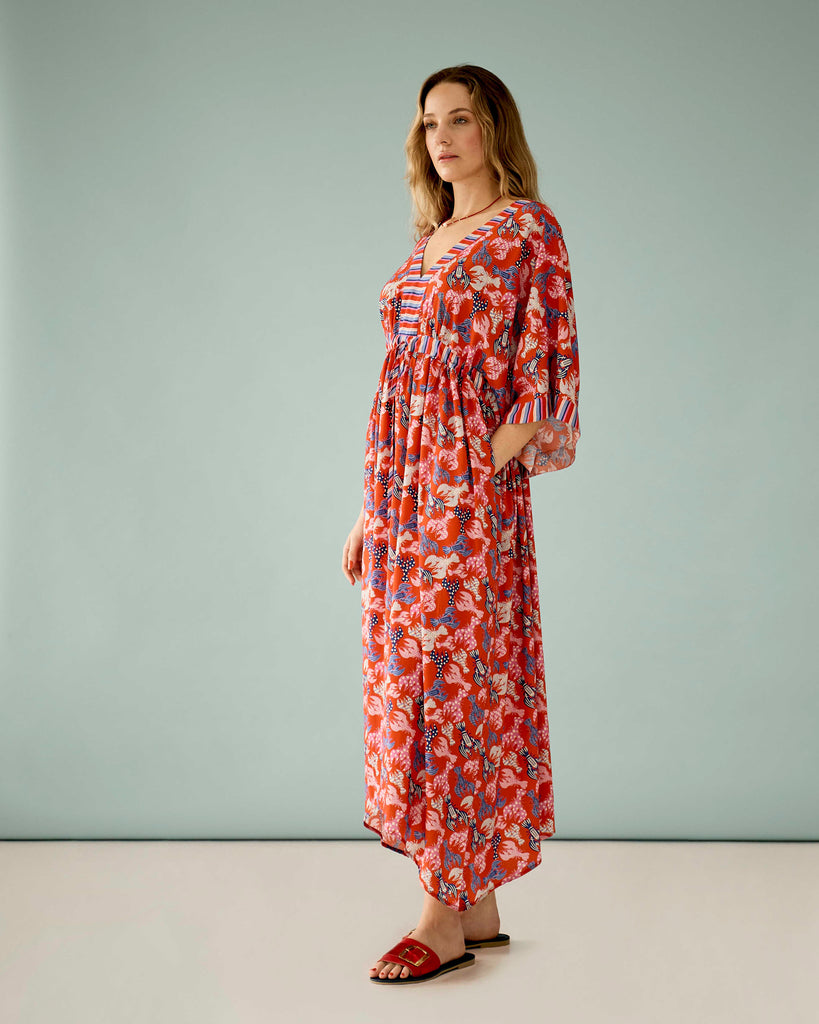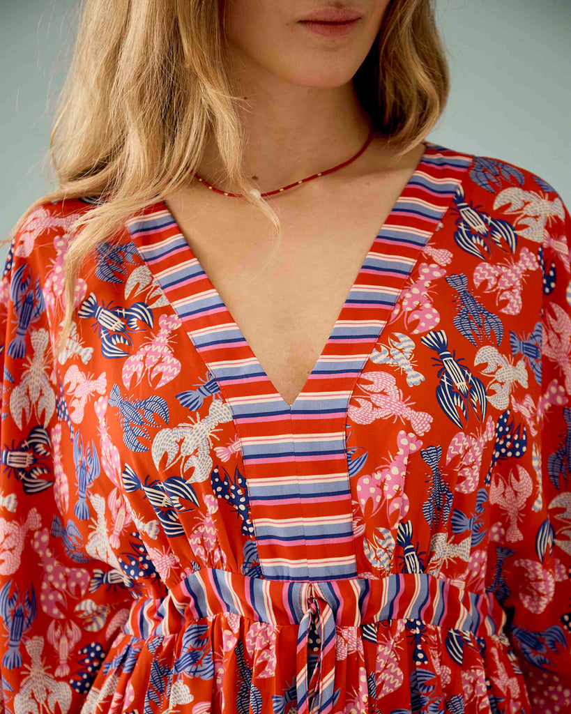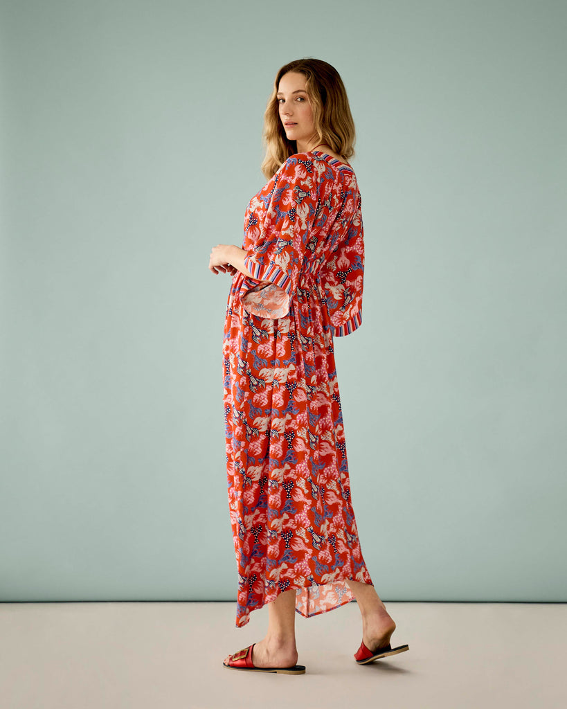 Hello hanky hem! We also added a skinny self-tie belt in the waist, cinching in boho volumes of fabric (*or not!), and we've swopped elasticated cuffs for kimono sleeves, freeing you up to swish and sway throughout your summer day.
