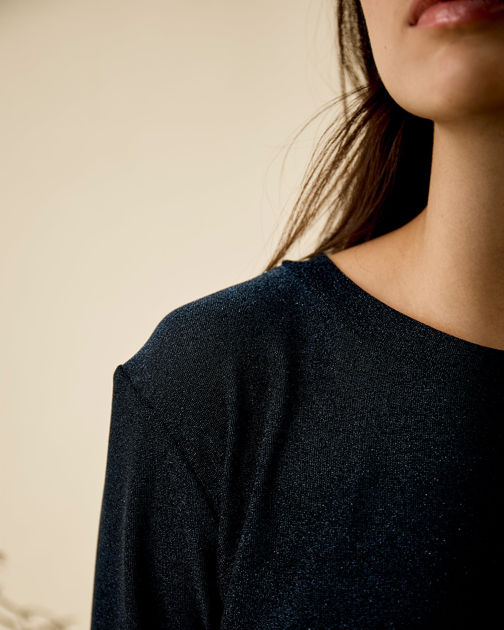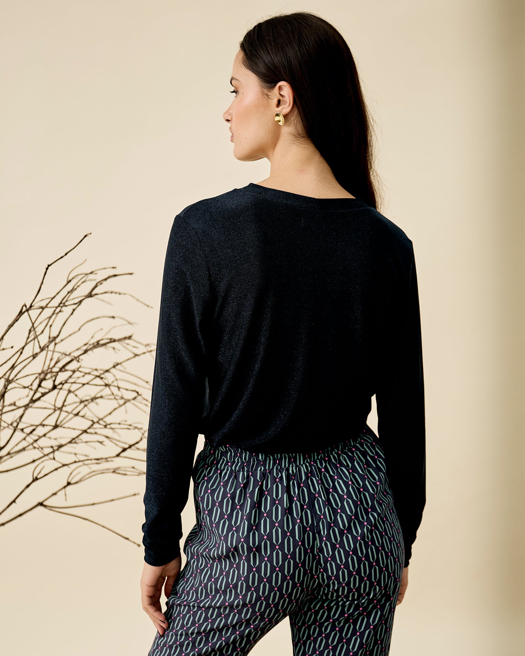 Add a touch of rock 'n roll glam to your winter wardrobe with this stretch glittery long-sleeved T.