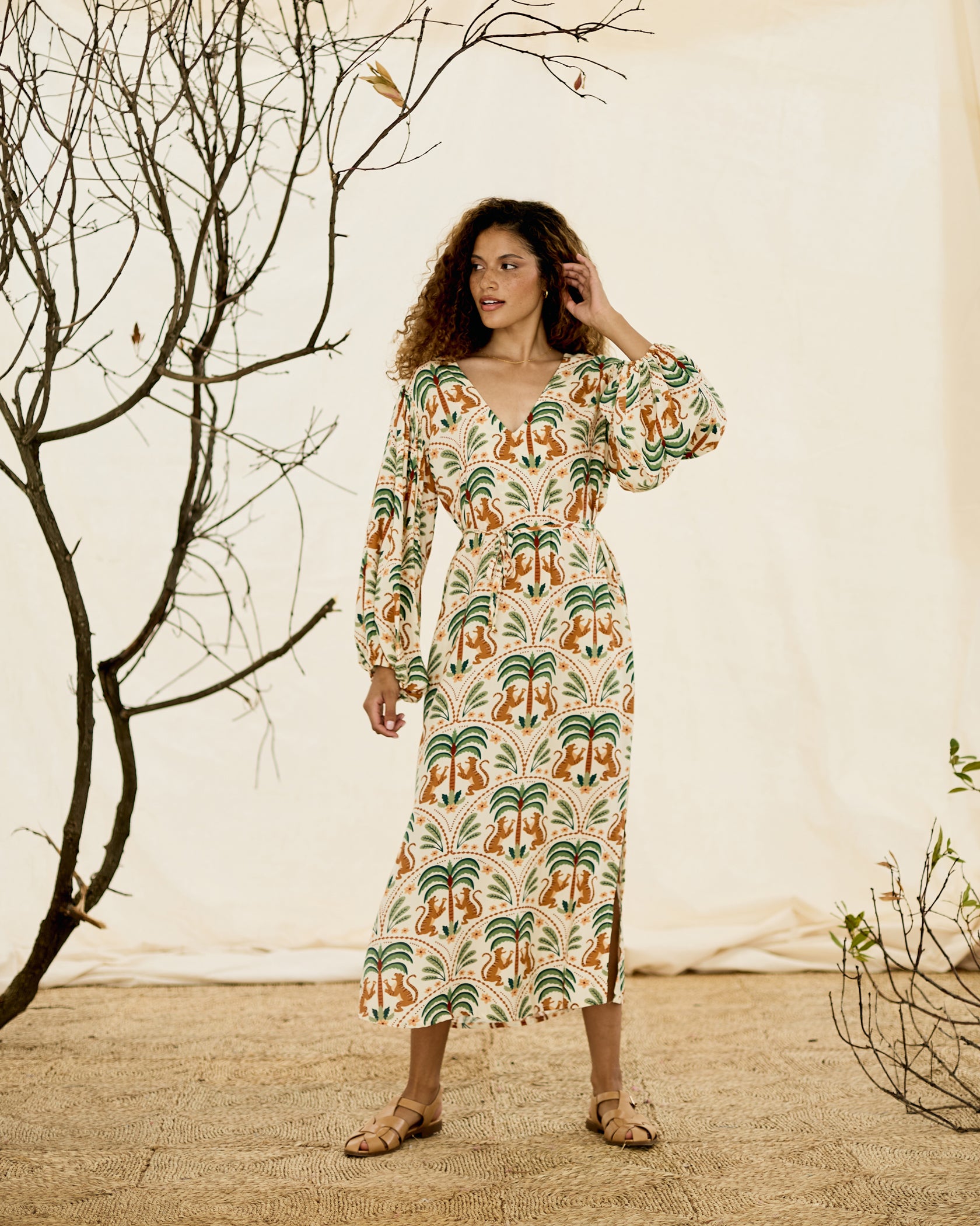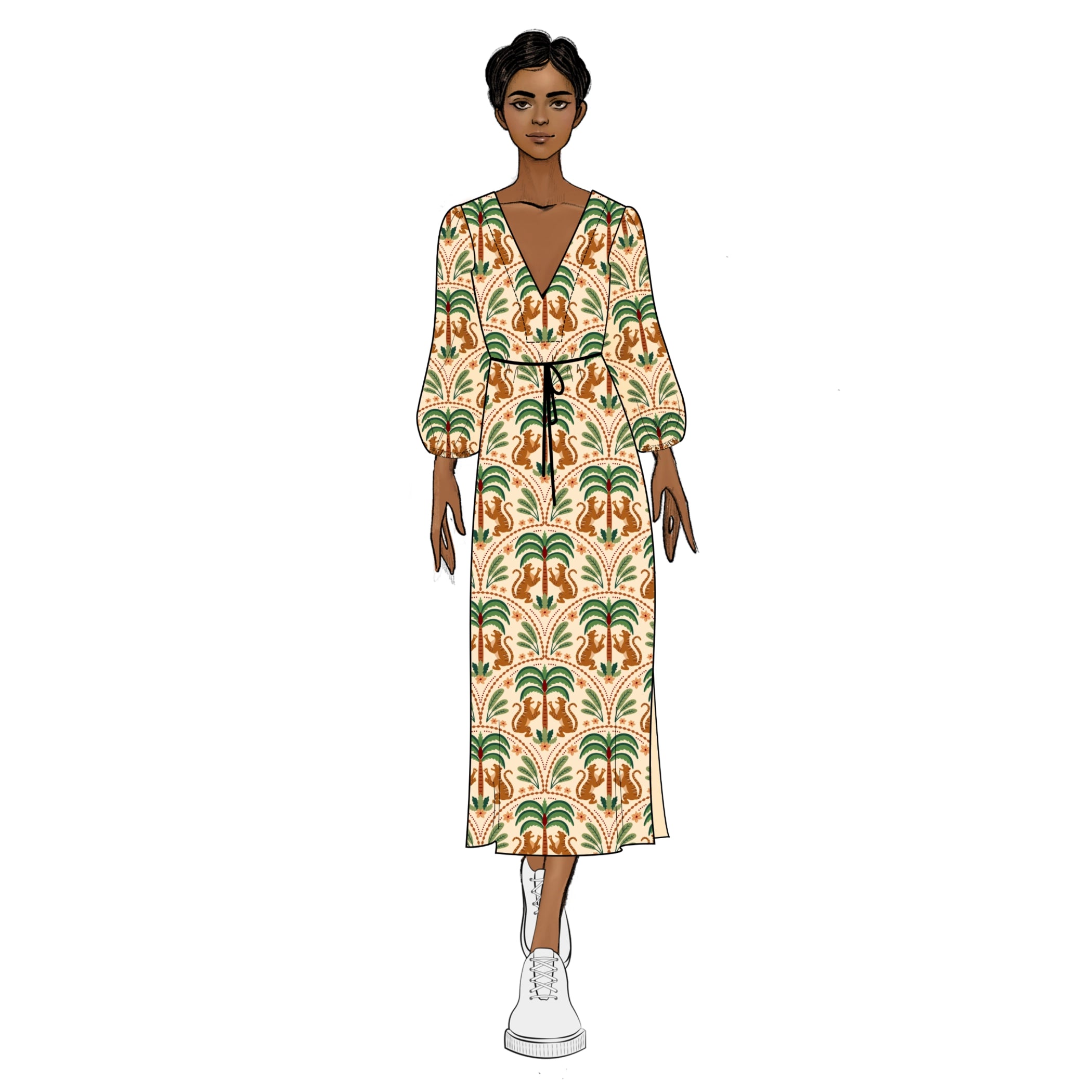 V-neck, straight midi kaftan