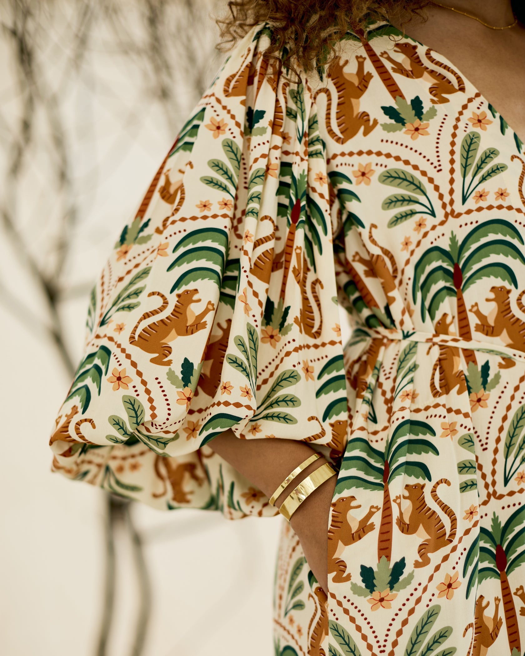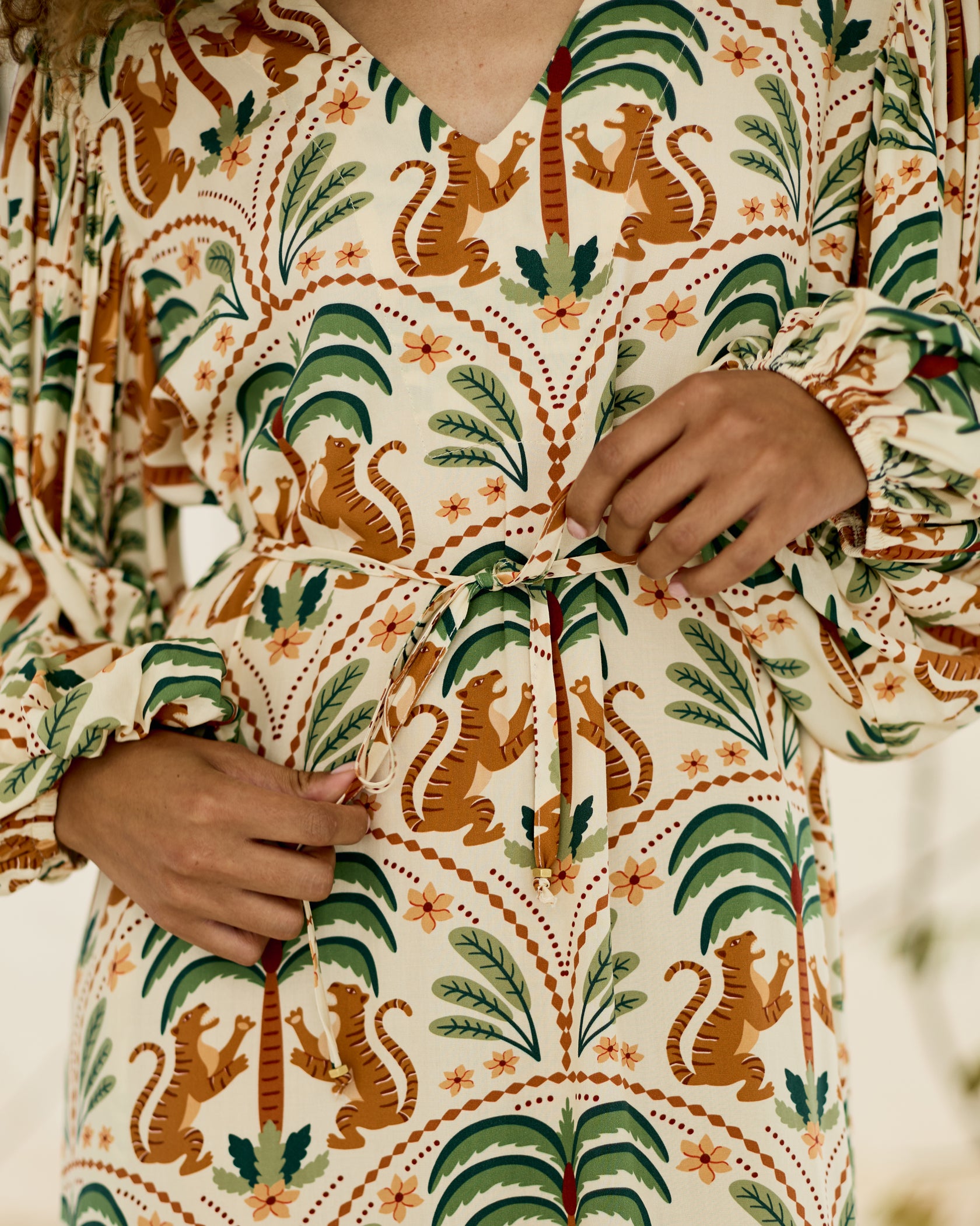 Handmade in Cape Town. Natural fibres should preferably be treated as delicates. Dry clean or hand wash in cold water with minimal detergent. Do not twist/wring. Do not tumble dry. Do not dry in the sun. A hot iron on the reverse side of your prints is the answer to restoring your Rayon/natural fibre to its former shape and silkiness.