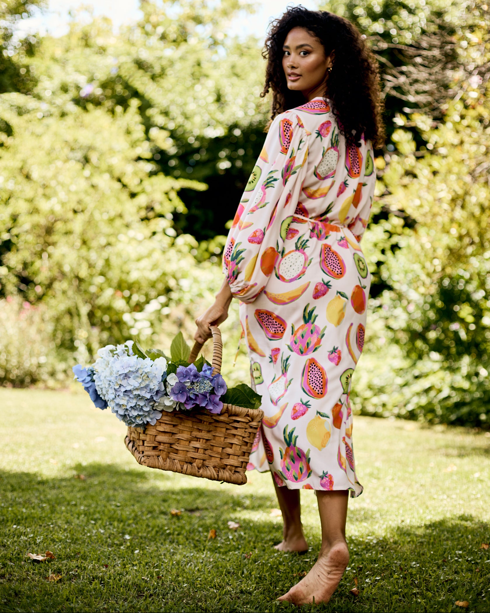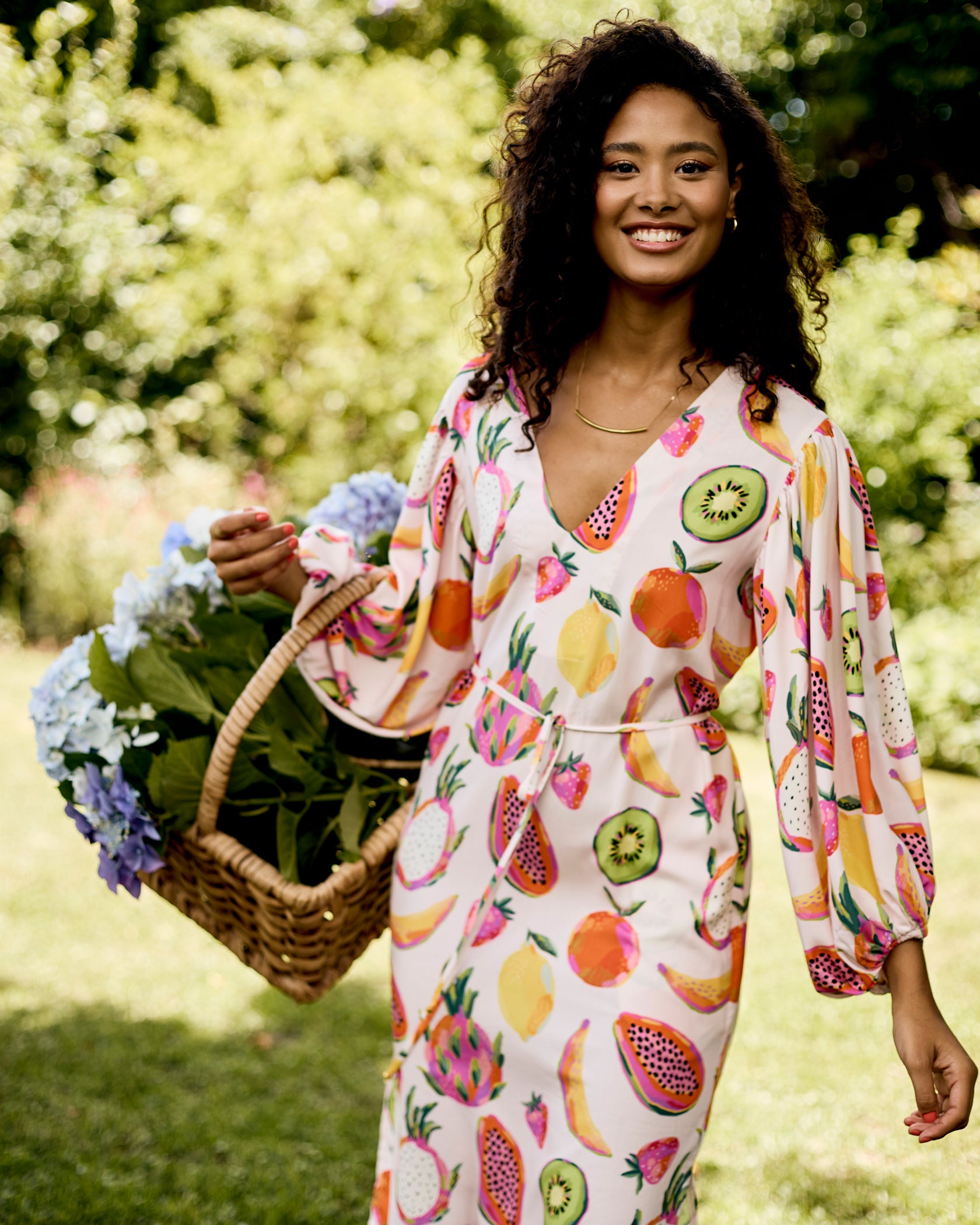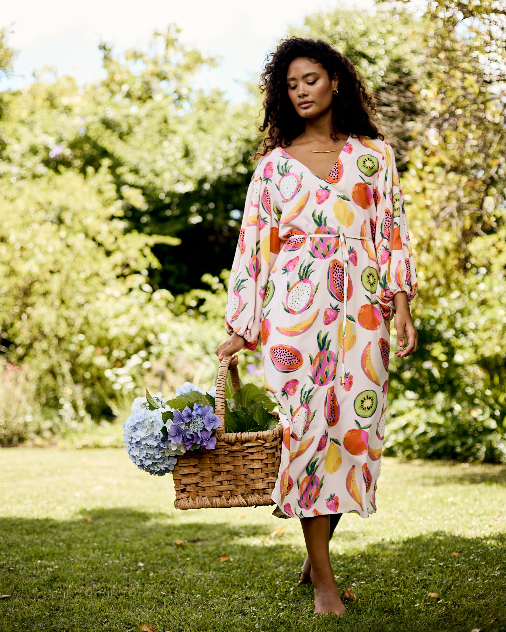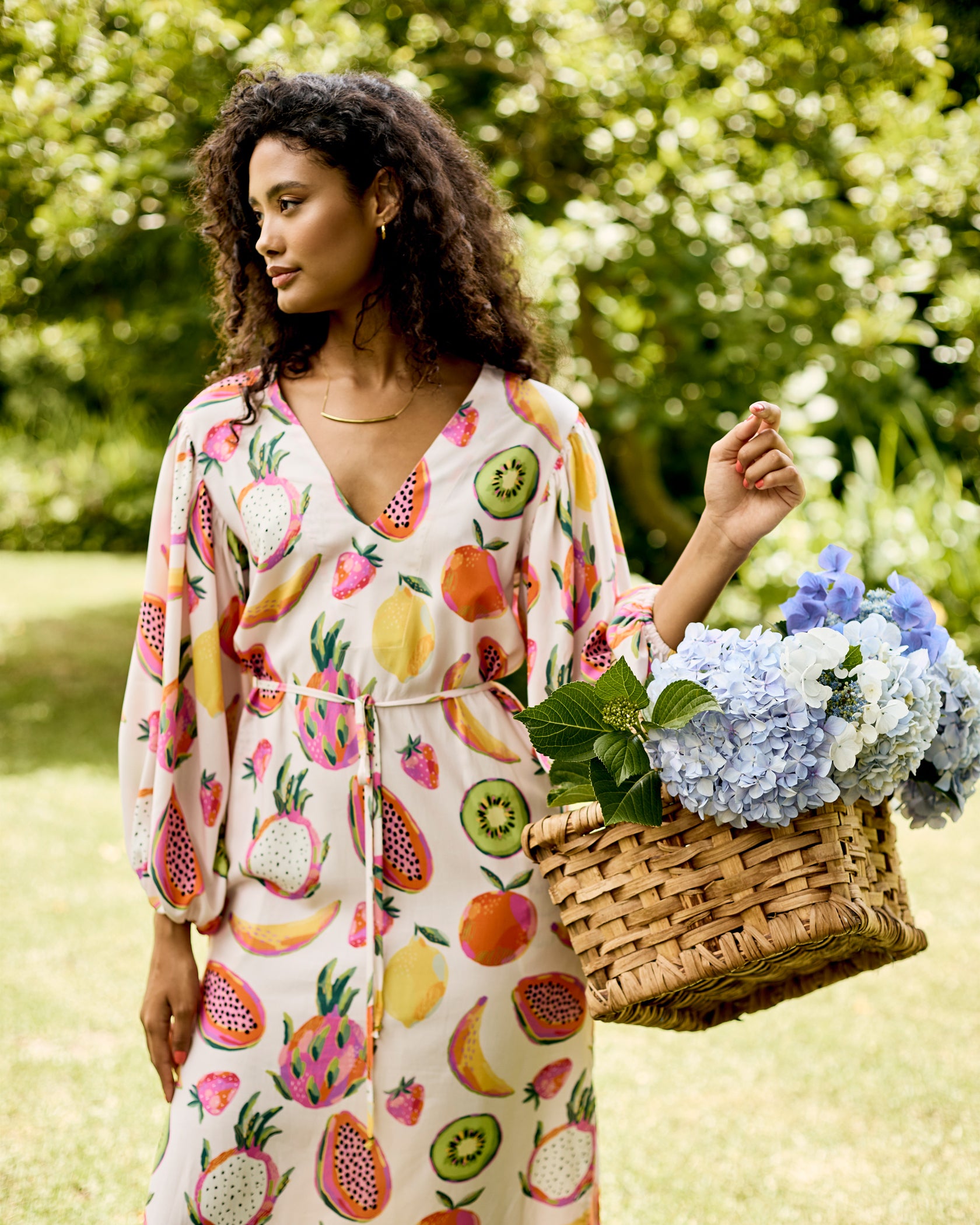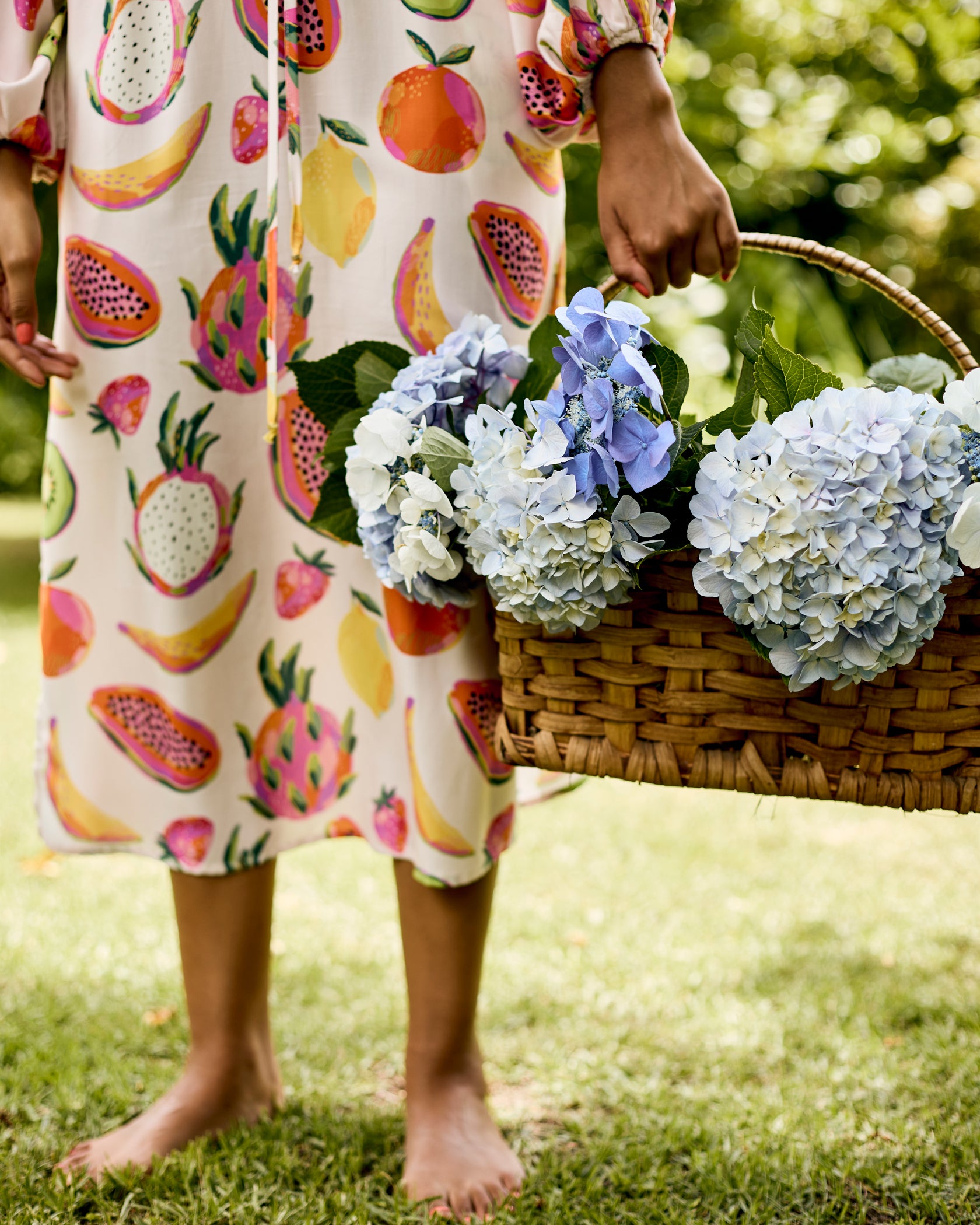 Handmade in Cape Town. Natural fibres should preferably be treated as delicates. Dry clean or hand wash in cold water with minimal detergent. Do not twist/wring. Do not tumble dry. Do not dry in the sun. A hot iron on the reverse side of your prints is the answer to restoring your Rayon/natural fibre to its former shape and silkiness.