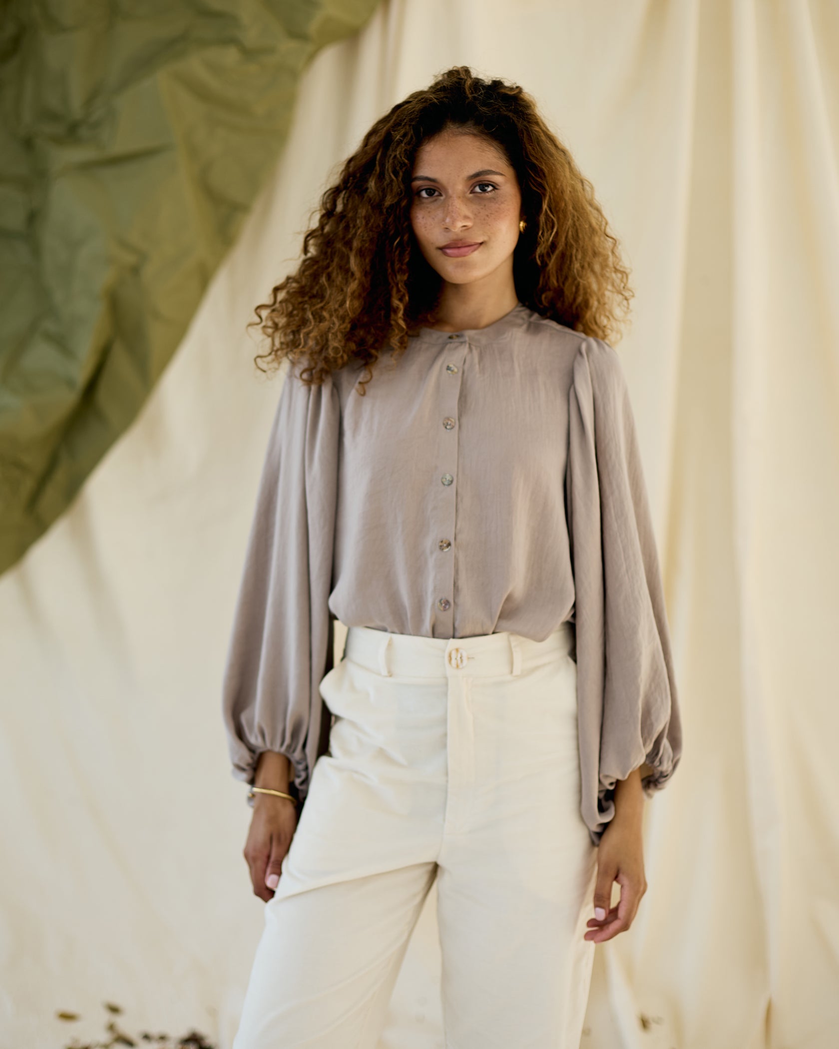 The Melon Blouse is more complicated than she looks! The exaggerated sleeve is, of course, the ⭐️ of the show and is balanced by a simple button-down body complete with a round neck trim detail.