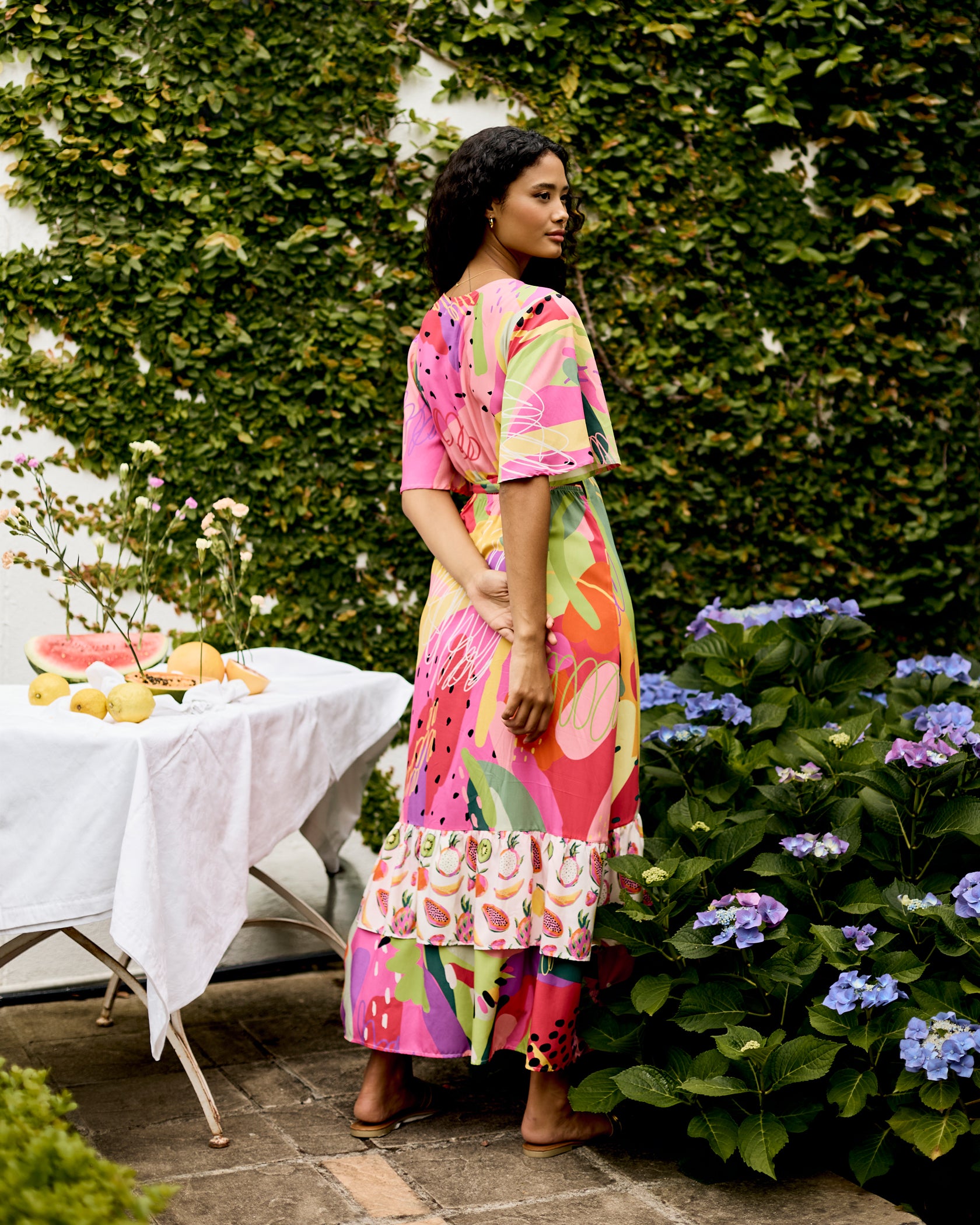 * Please note: due to the amplified nature of the Fruit Punch print, each garment's print placement will look unique, as they'll be cut from different parts of the fabric roll, ie. your Punch print placement will not look exactly like the image provided.