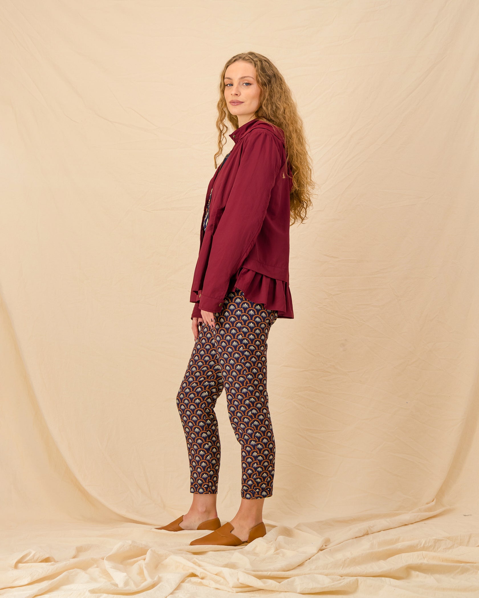 Handmade in Cape Town. Natural fibres should preferably be treated as delicates. Dry clean or hand wash in cold water with minimal detergent. Do not twist/wring. Do not tumble dry. Do not dry in the sun. A hot iron on the reverse side of your prints is the answer to restoring your Rayon/natural fibre to its former shape and silkiness.