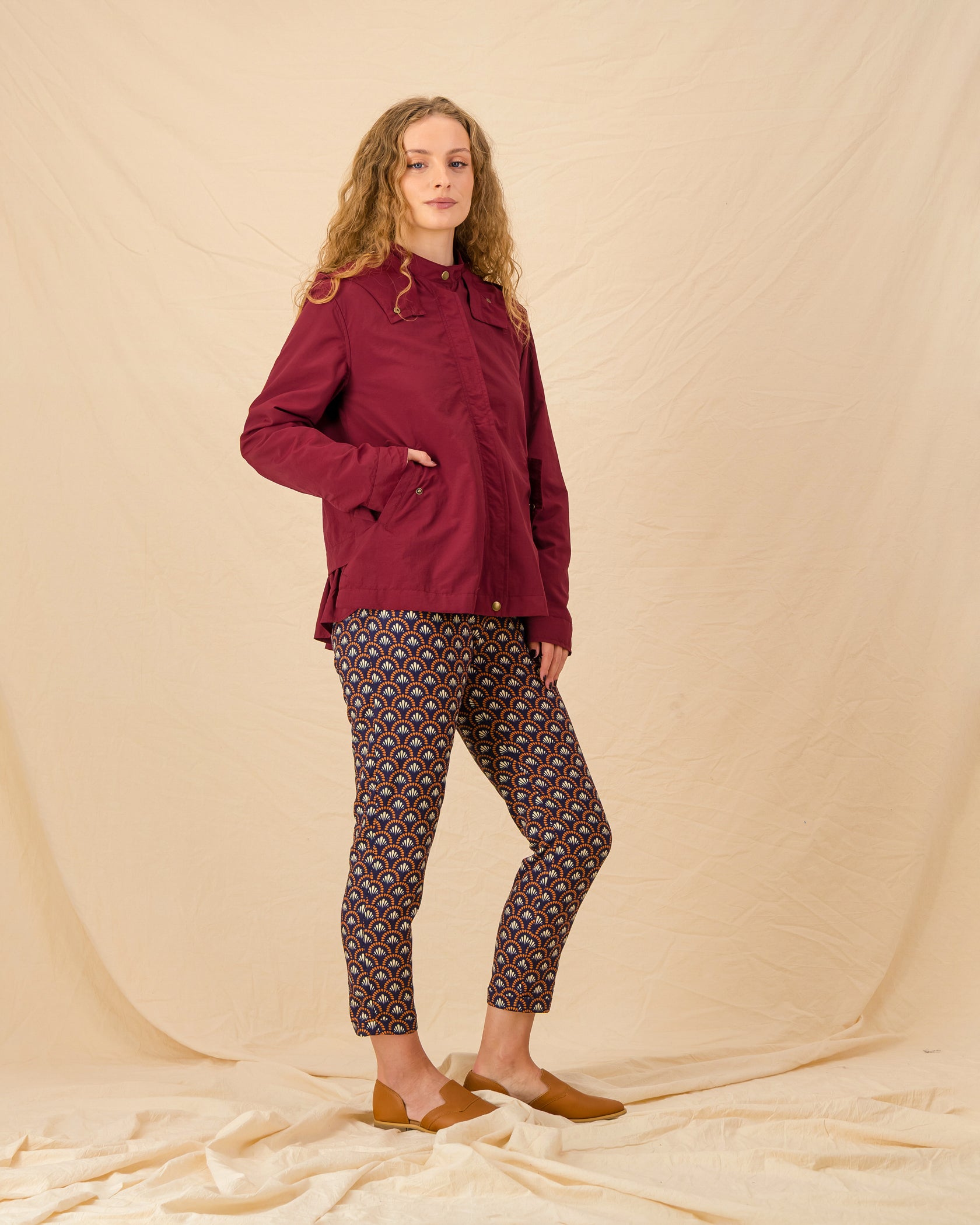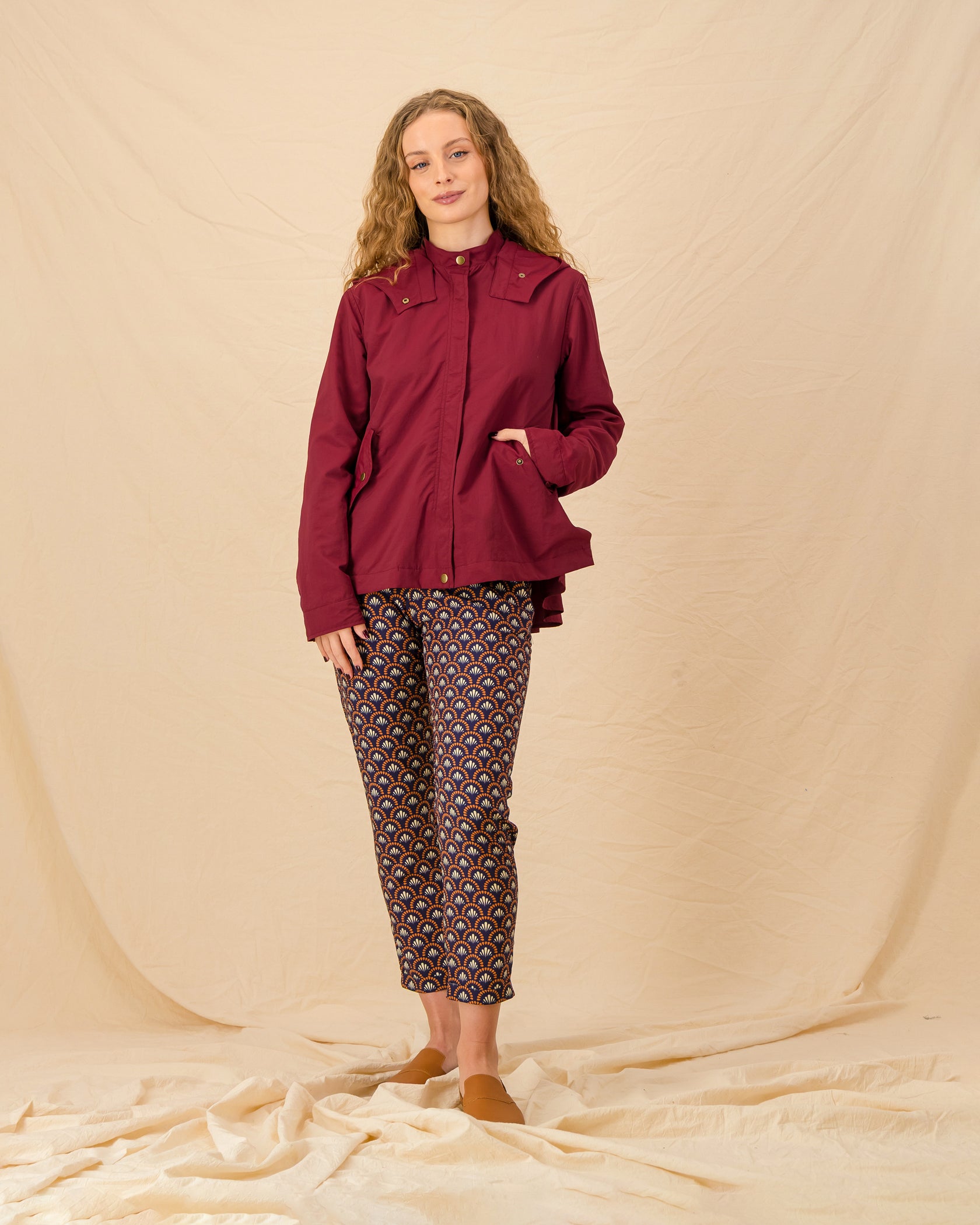 Made from water-resistant and wind-breaking material, this lightweight beauty will keep you dry and protected all year round. The ruffle detail adds a feminine sass, while the bound inner seams in a surprise GOOD print add a fun and unique twist, a special detail for you to enjoy.