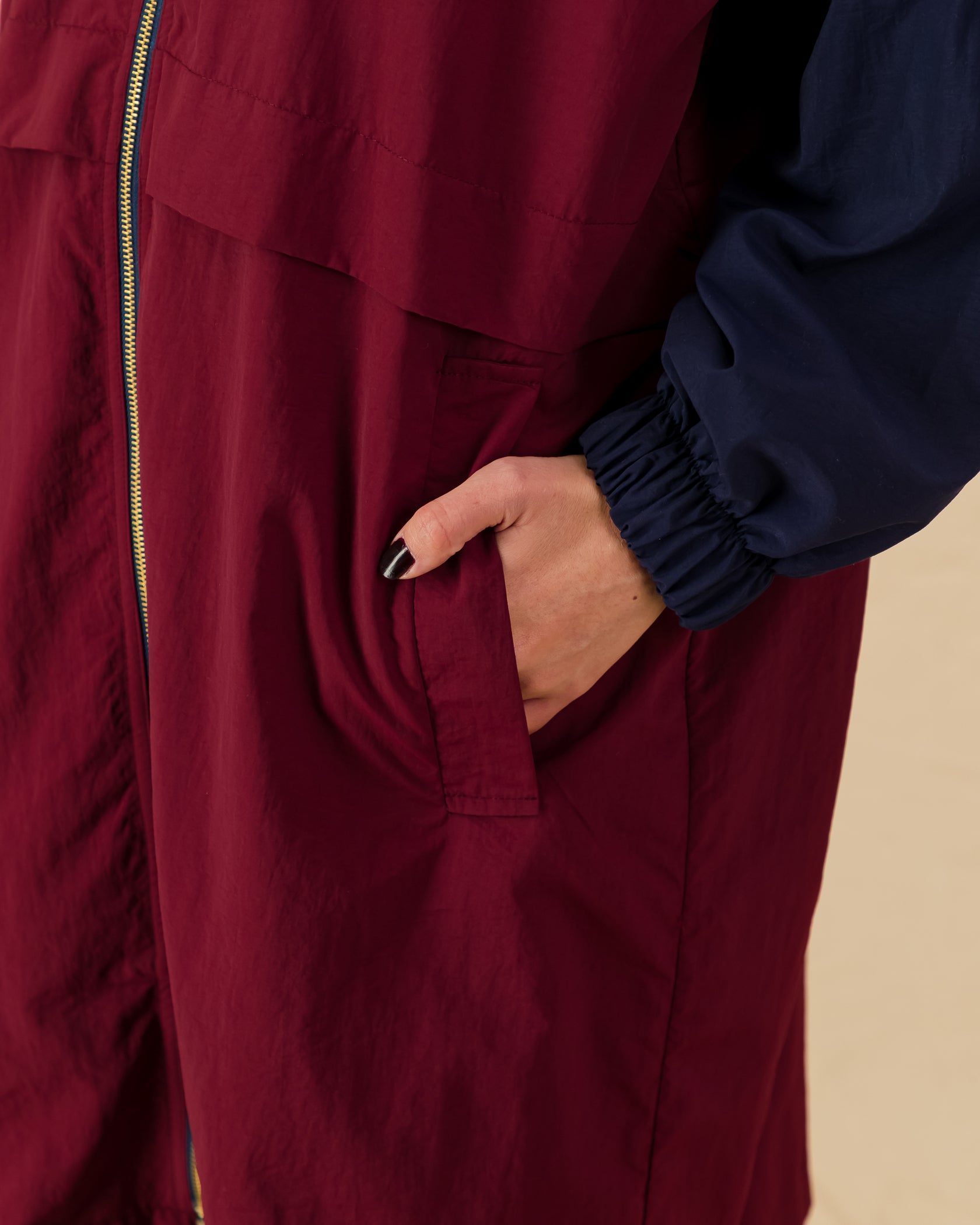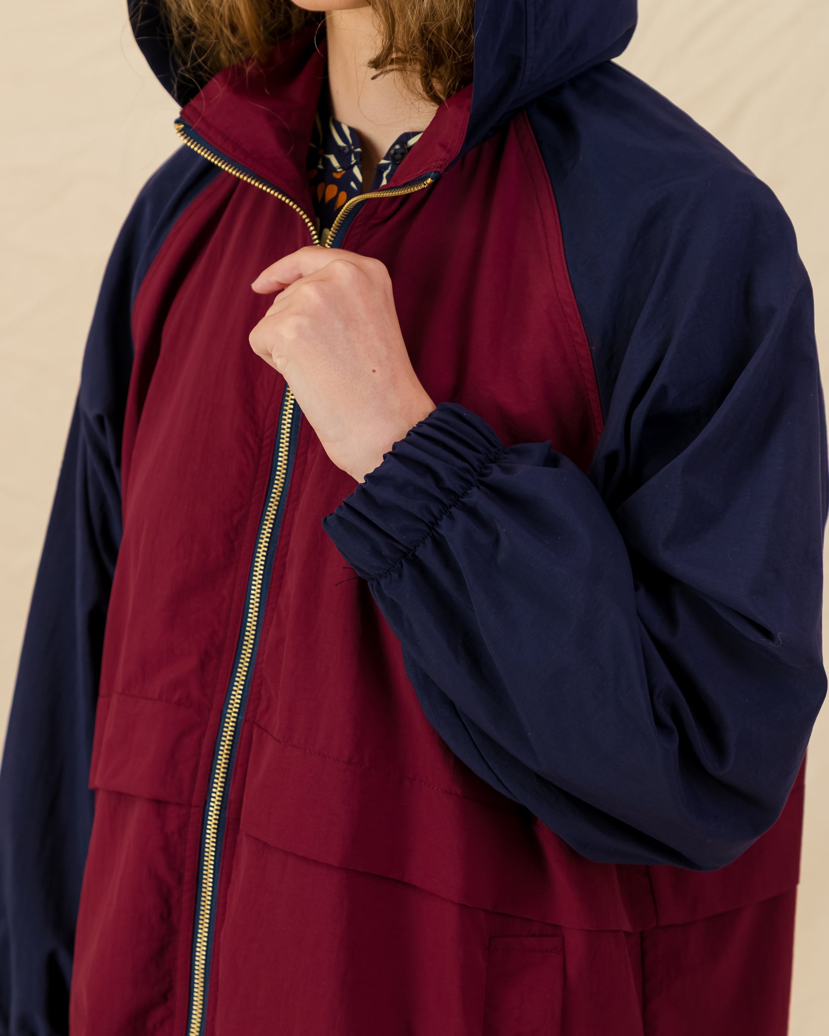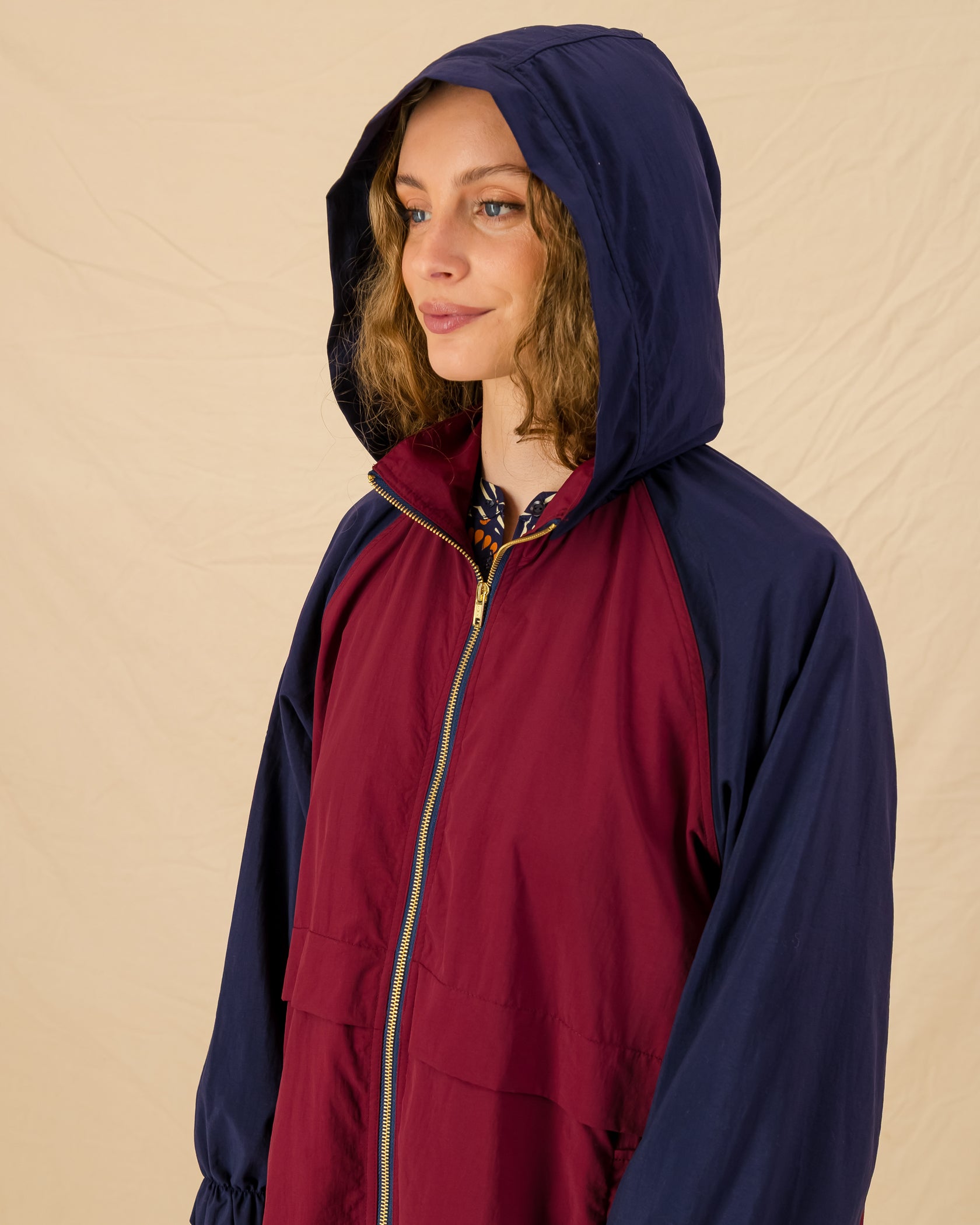 A dual-tone lightweight parka to have your back on chilly days. The combo of classic navy and royal burgundy will instantly zhuzh up your look, adding a jewel-toned sophistication to your winter wardrobe.