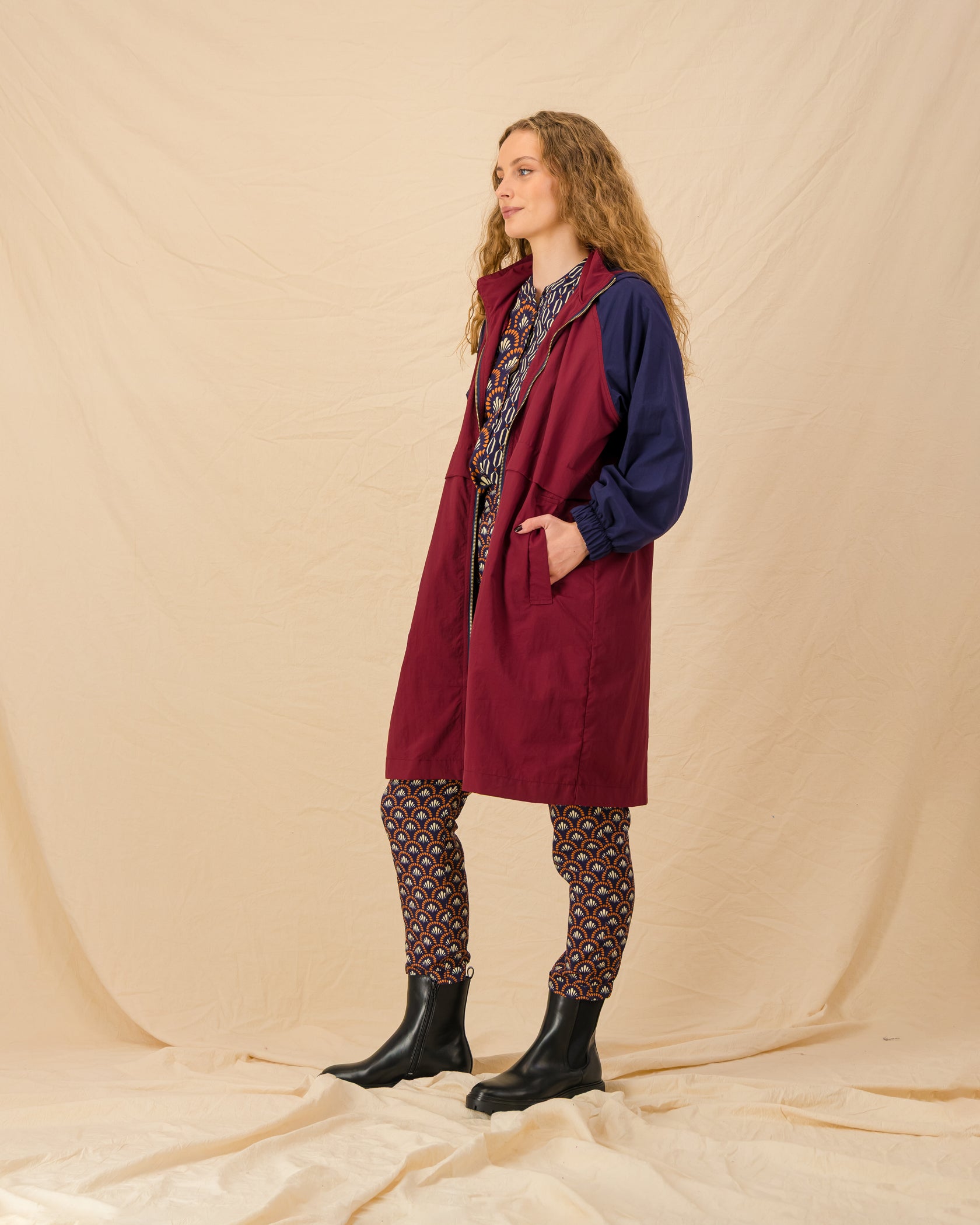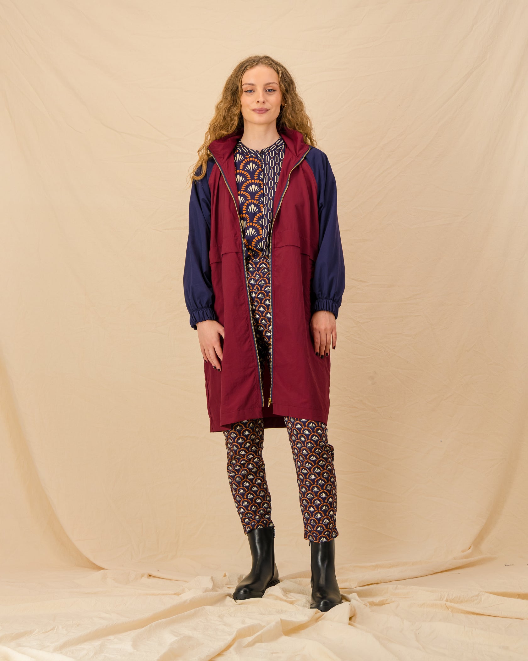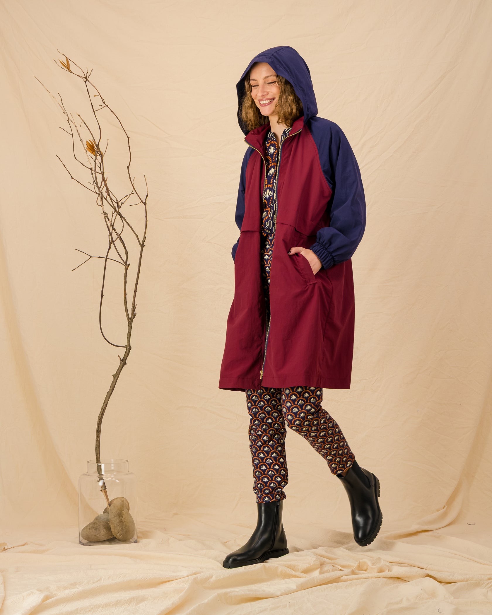 A dual-tone lightweight parka to have your back on chilly days. The combo of classic navy and royal burgundy will instantly zhuzh up your look, adding a jewel-toned sophistication to your winter wardrobe.