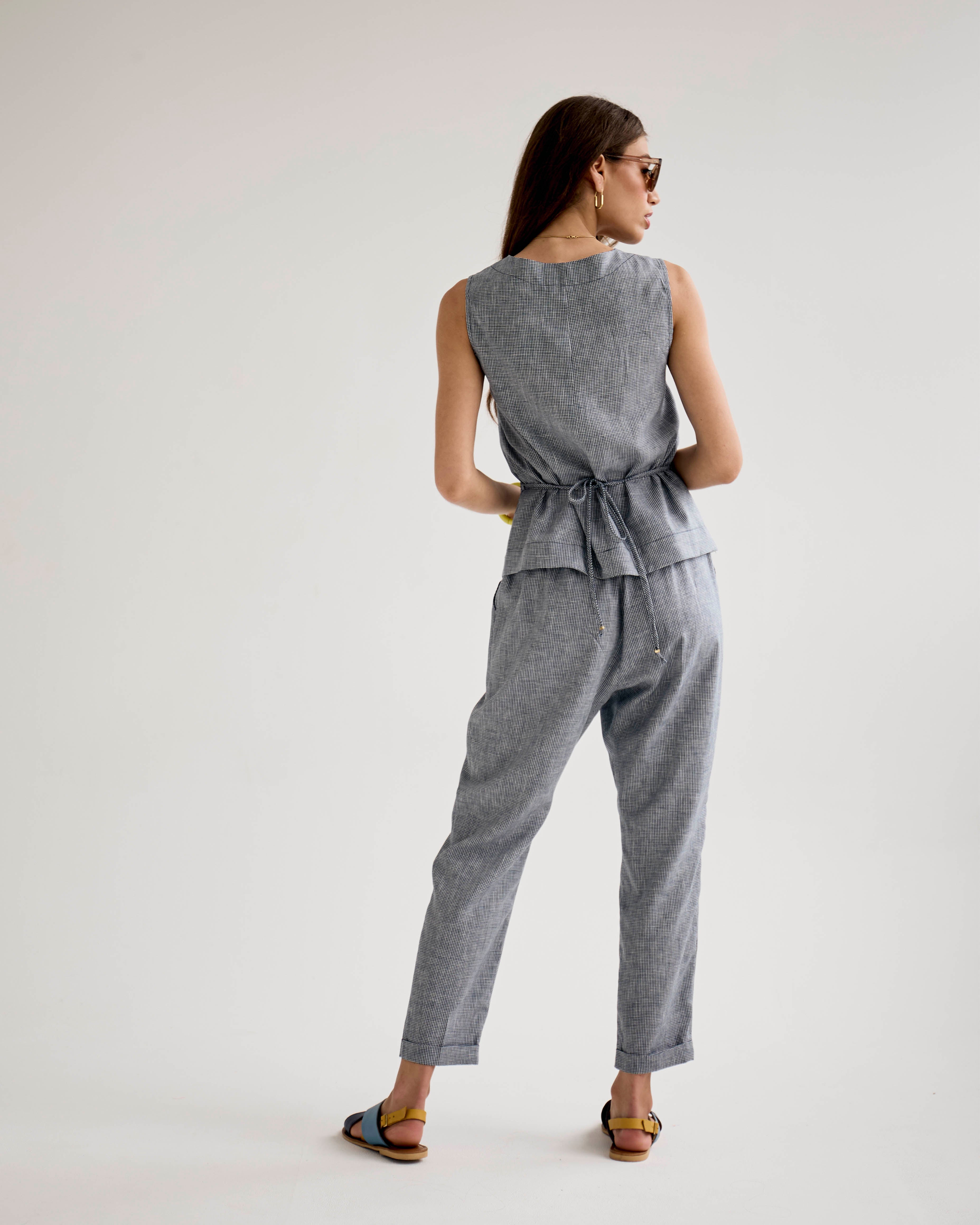 The Kirstin Pants strike the perfect balance between polish and play. A high-waisted, tapered fit gives them a sleek silhouette, while the navy cheetah print brings a bold graphic edge.