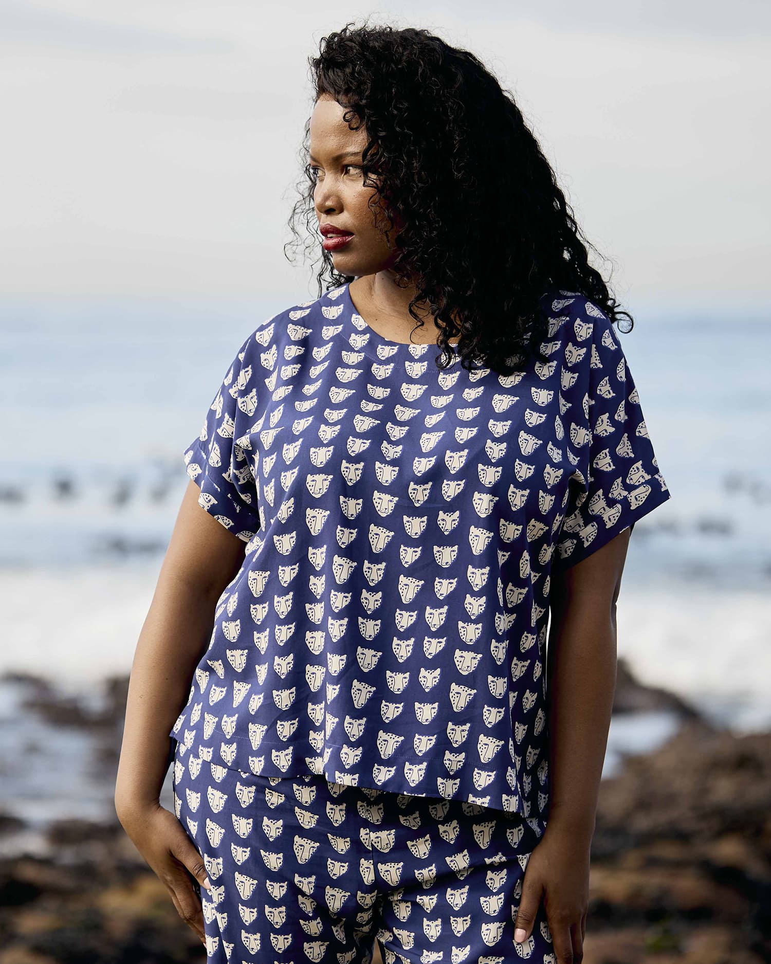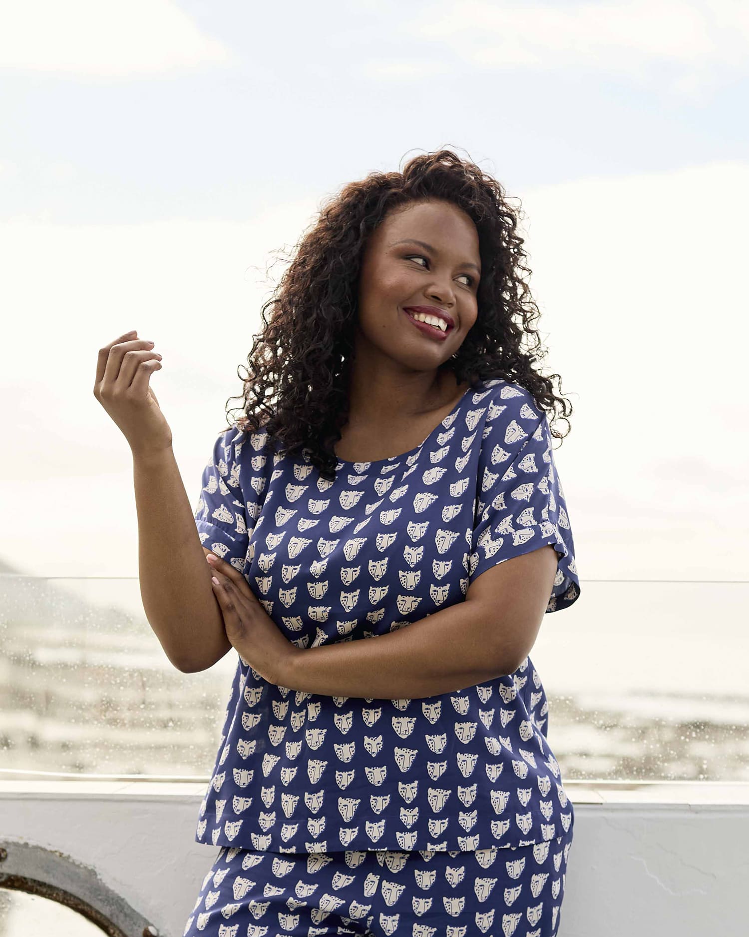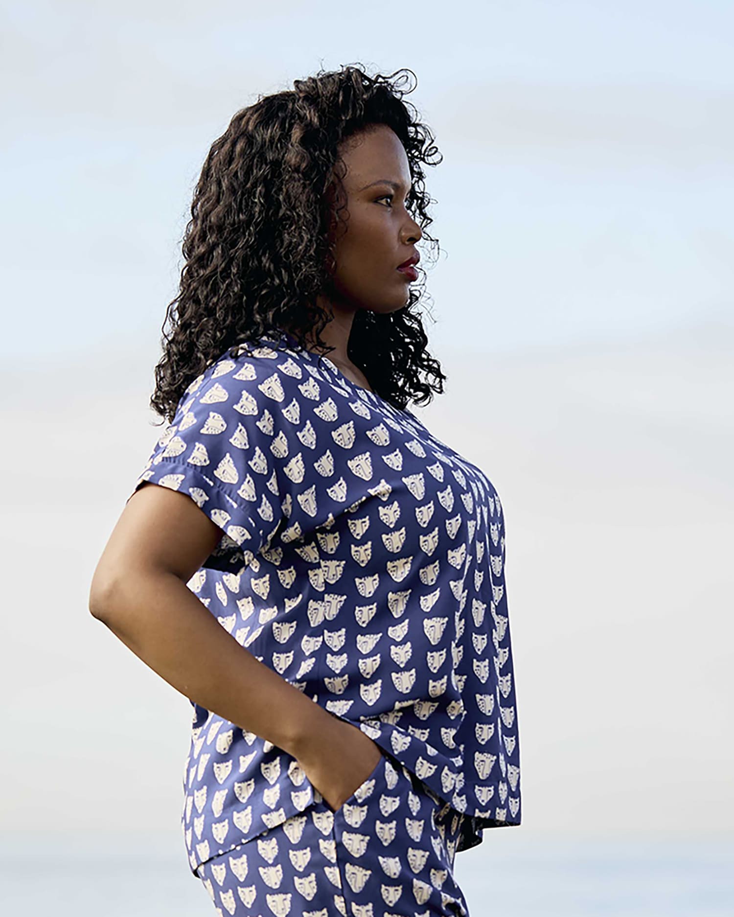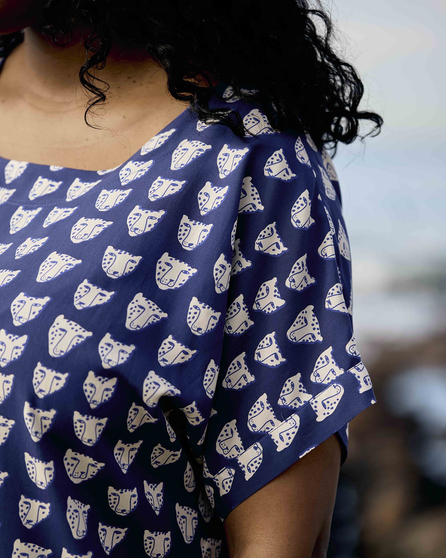 Handmade in Cape Town. Natural fibres should preferably be treated as delicates. Dry clean or hand wash in cold water with minimal detergent. Do not twist/wring. Do not tumble dry. Do not dry in the sun. A hot iron on the reverse side of your prints is the answer to restoring your Rayon/natural fibre to its former shape and silkiness.