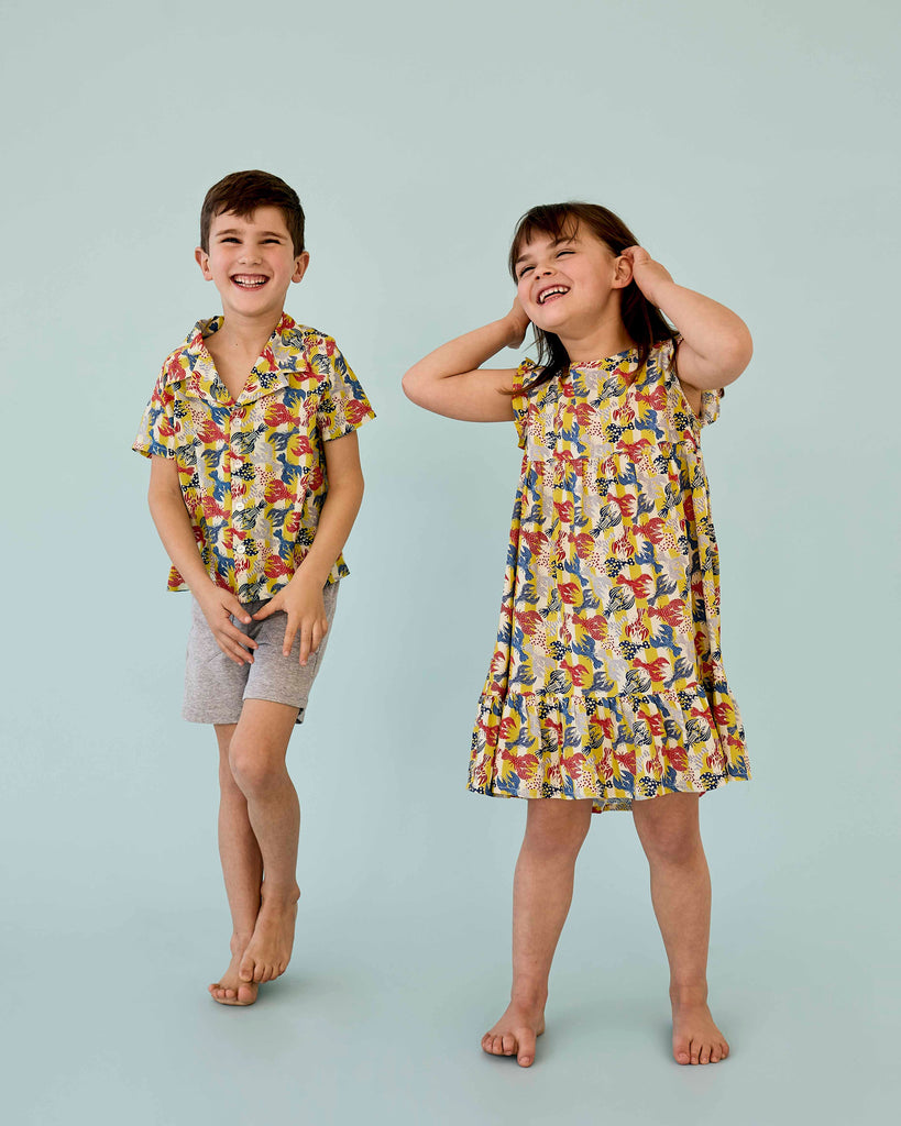 Handmade in Cape Town. Natural fibres should preferably be treated as delicates. Dry clean or hand wash in cold water with minimal detergent. Do not twist/wring. Do not tumble dry. Do not dry in the sun. A hot iron on the reverse side of your prints is the answer to restoring your Rayon/natural fibre to its former shape and silkiness.