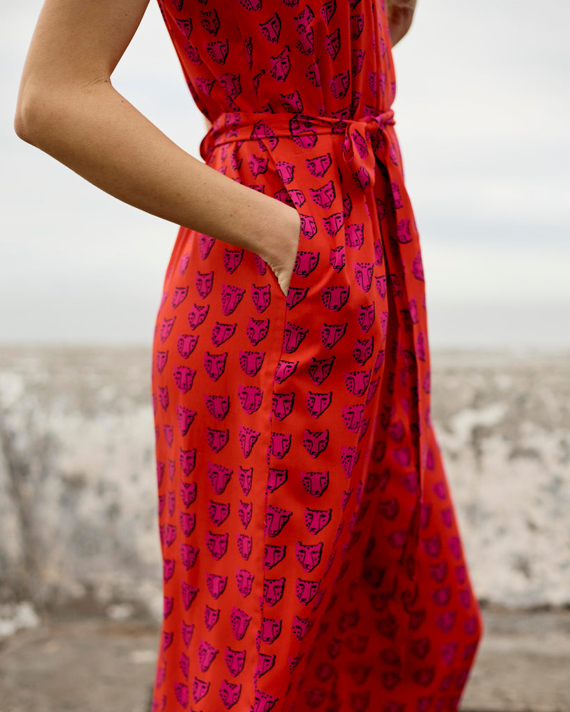 Handmade in Cape Town. Natural fibres should preferably be treated as delicates. Dry clean or handwash in cold water with minimal detergent. Do not twist/wring. Do not tumble dry. Do not dry in the sun. A hot iron on the reverse side of your prints is the answer to restoring your Rayon/natural fibre to its former shape and silkiness.