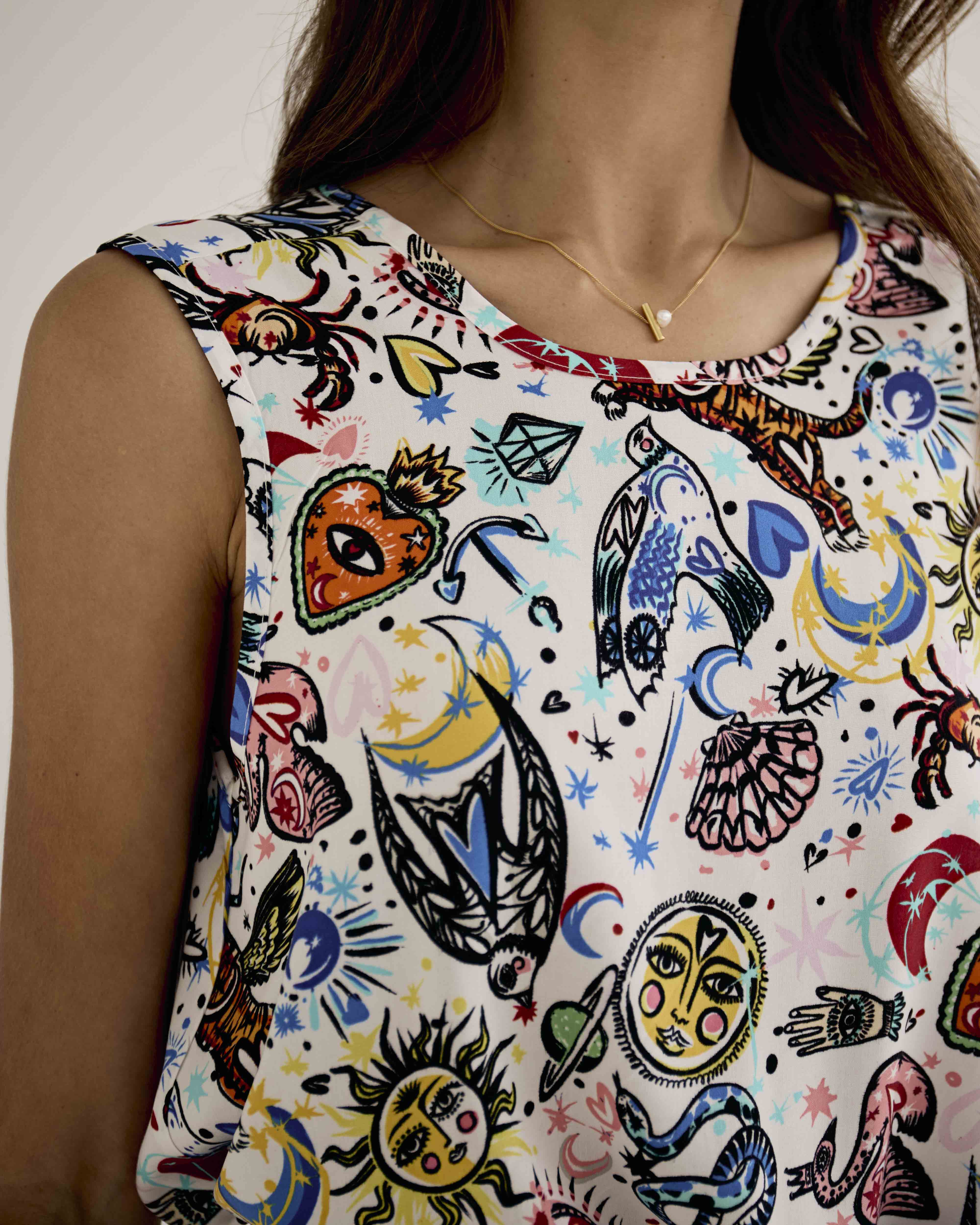 The Coral Tank Top brings double the fun in one easy style. Designed with an elasticated neckline and soft, floaty drape, it flips effortlessly from front to back. Two looks, same carefree summer energy. Light, airy, and made for sunshine.