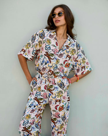 Handmade in Cape Town. Natural fibres should preferably be treated as delicates. Dry clean or hand wash in cold water with minimal detergent. Do not twist/wring. Do not tumble dry. Do not dry in the sun. A hot iron on the reverse side of your prints is the answer to restoring your Rayon/natural fibre to its former shape and silkiness.