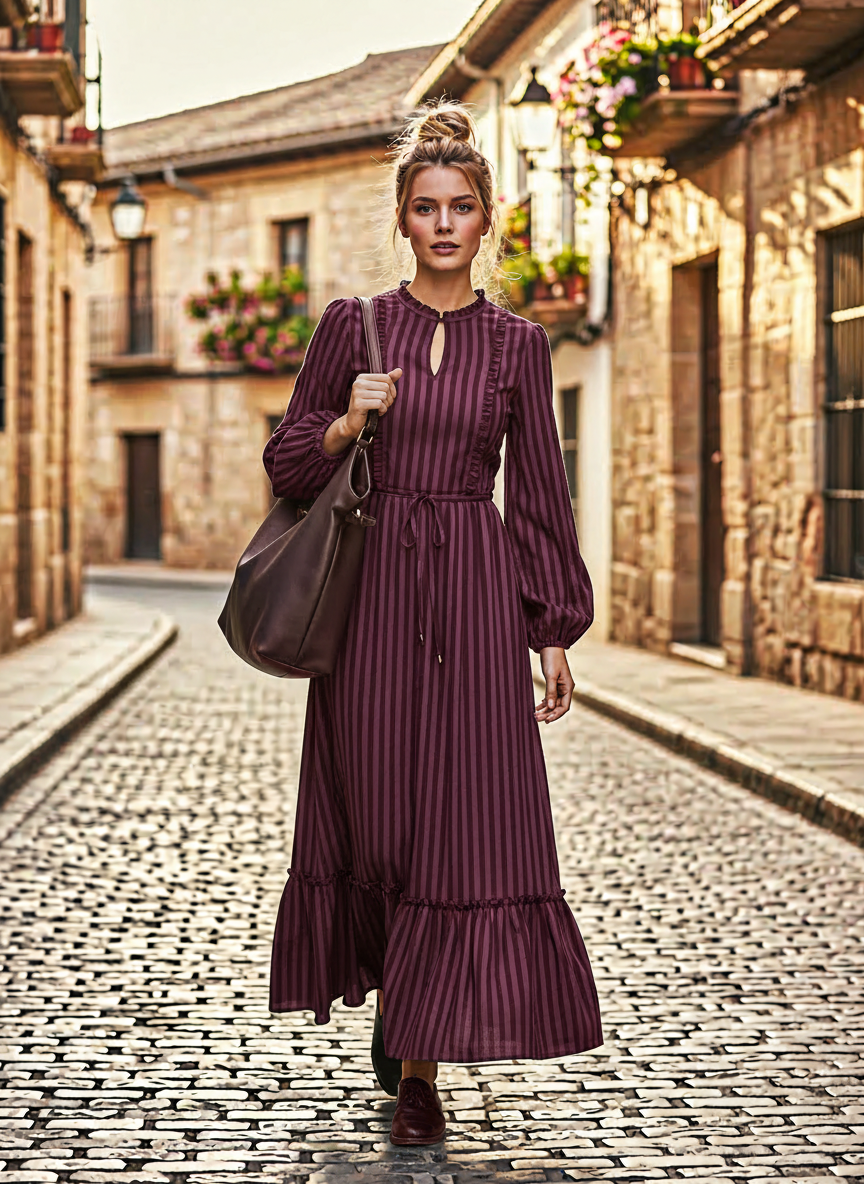 Choose a frilly femme neckline, or a relaxed v-neck. Cinch your waist to start for a delightful silhouette, or leave the tie undone for boho chic or because you had two lunches. Too chilly for just Rayon? Pop a polo neck underneath and throw a boot on!