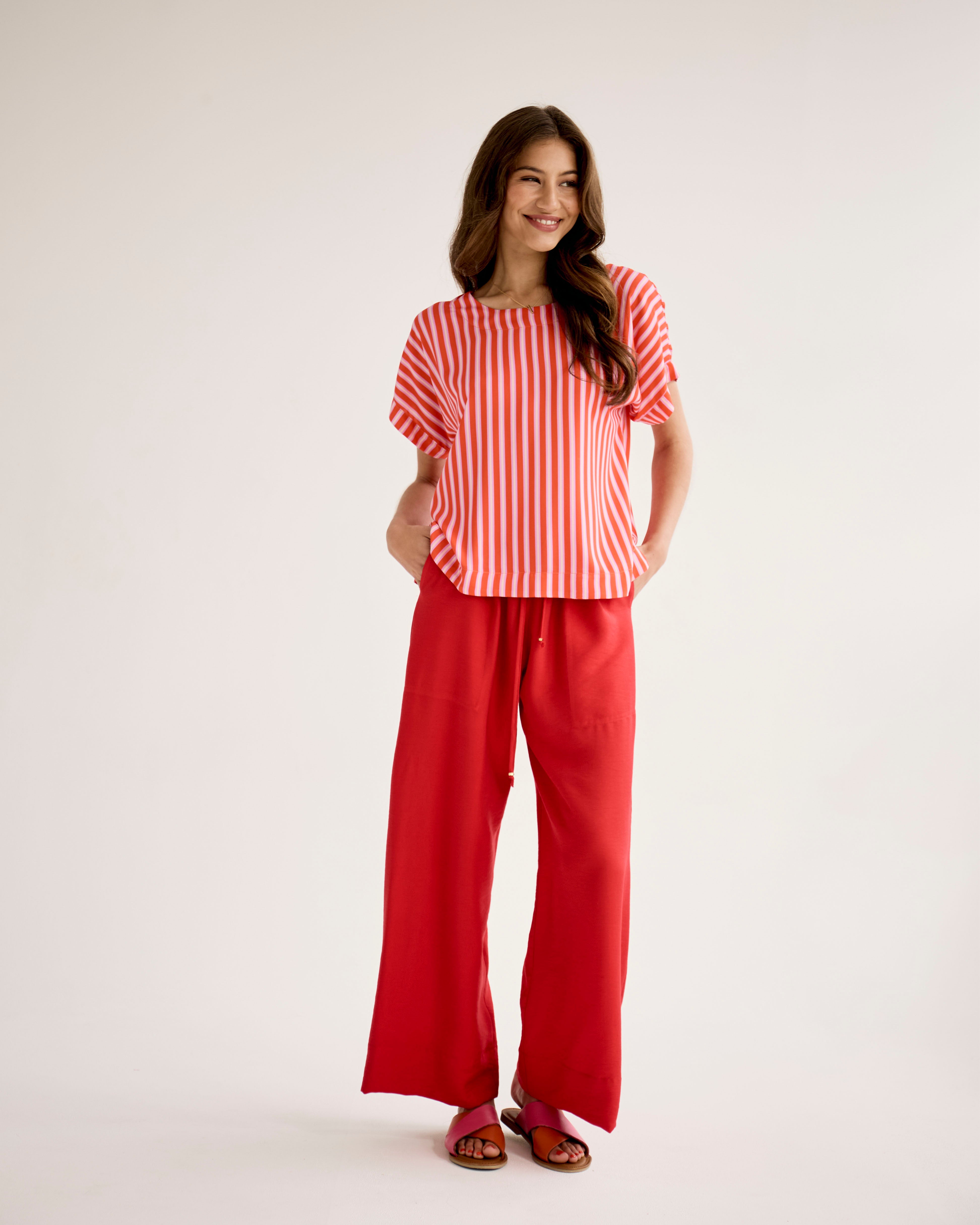 Handmade in Cape Town. Natural fibres should preferably be treated as delicates. Dry clean or hand wash in cold water with minimal detergent. Do not twist/wring. Do not tumble dry. Do not dry in the sun. A hot iron on the reverse side of your prints is the answer to restoring your Rayon/natural fibre to its former shape and silkiness.