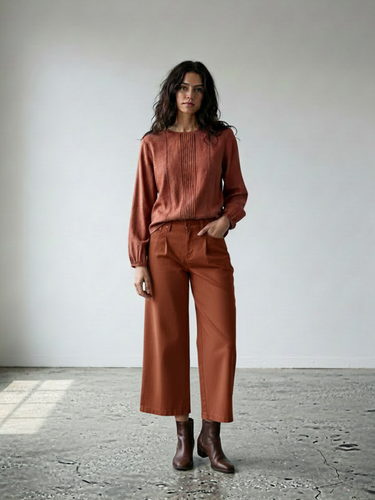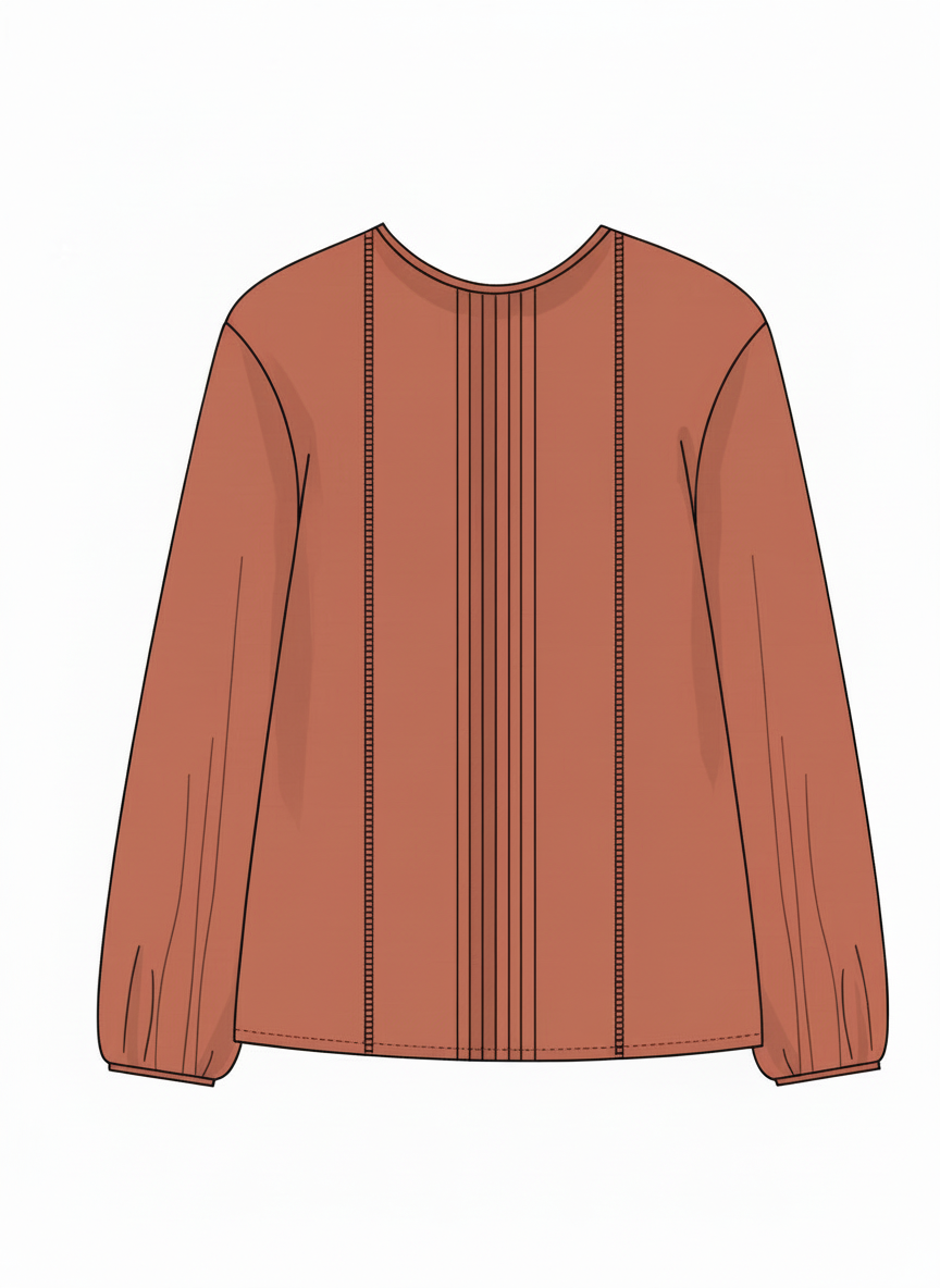 Pintucks and ladder lace trace the round neckline, while long sleeves finish in soft elasticated cuffs. A back neck keyhole adds ease, and a waterfall frill at the hem brings the perfect touch of floaty charm. A gentle classic with a little drama.