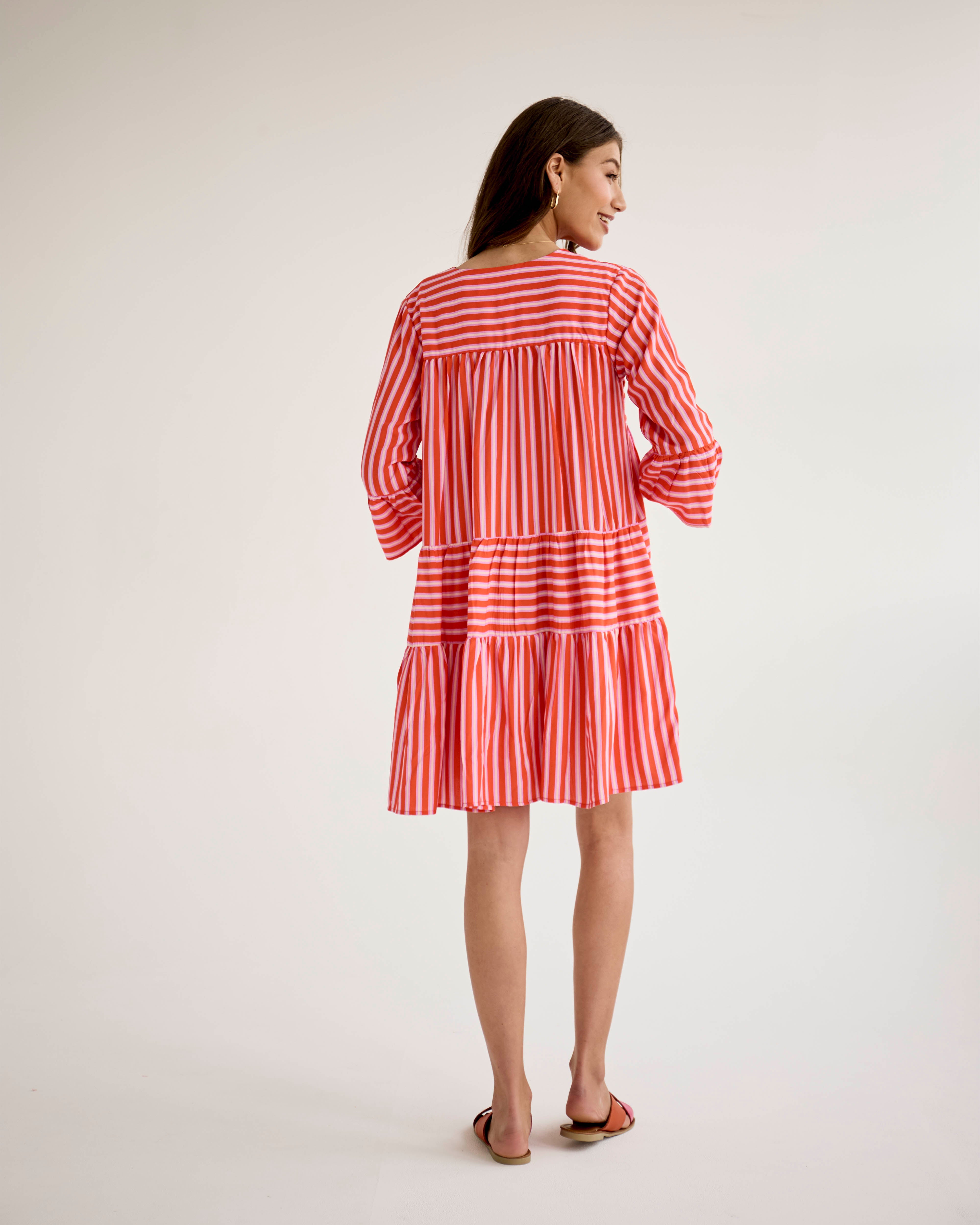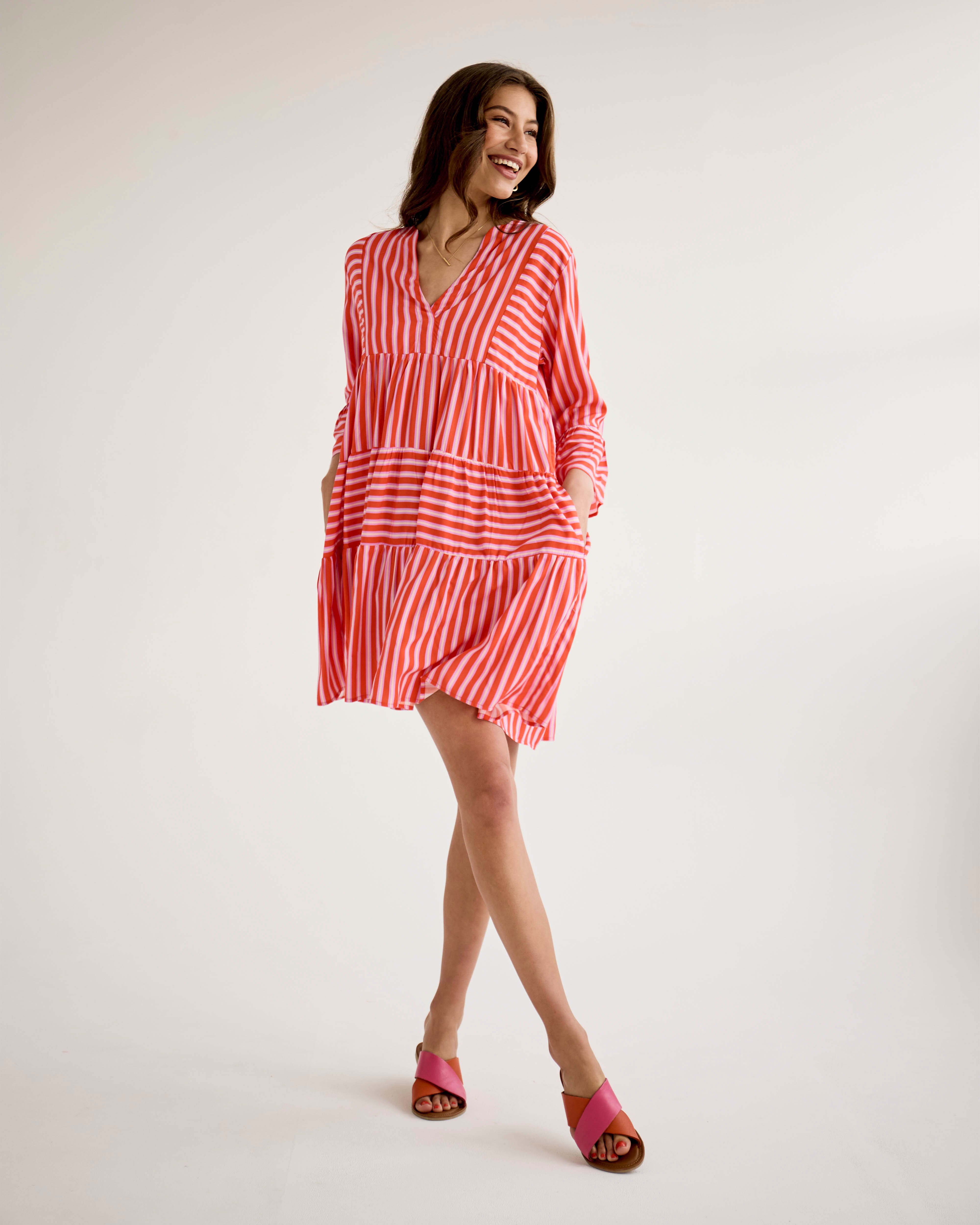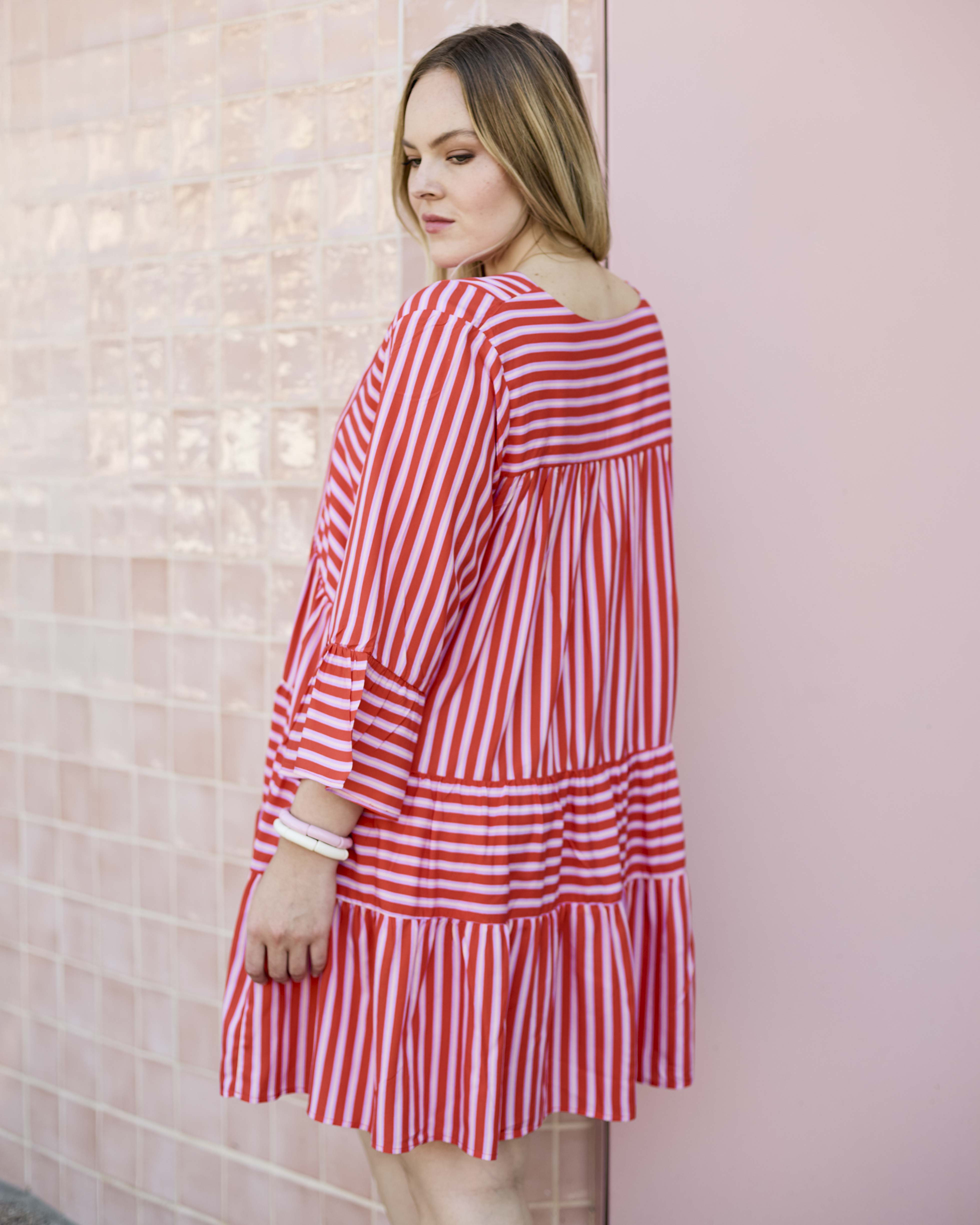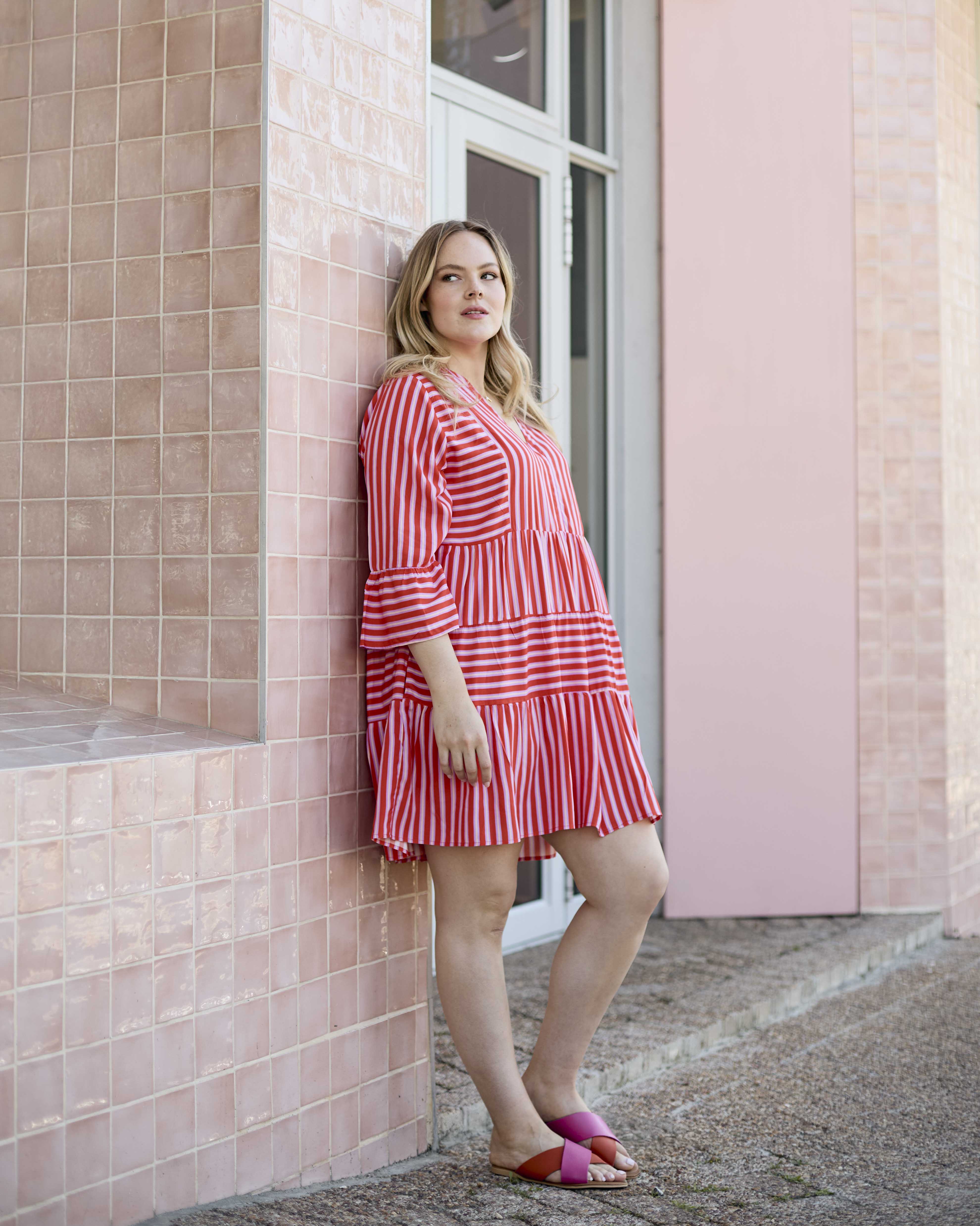 Saffron Dress - Red & Lilac Stripe